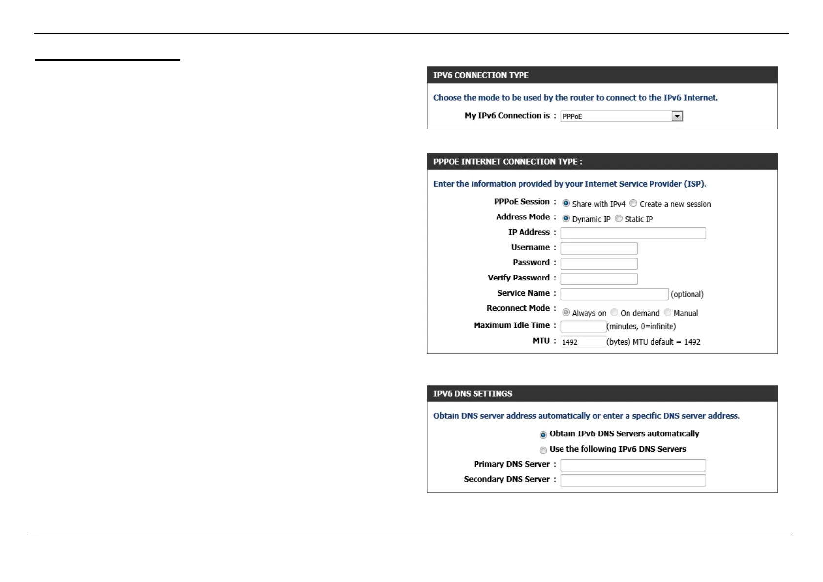 Verify Password: Enter the IPv6 PPPoE password here again to verify.