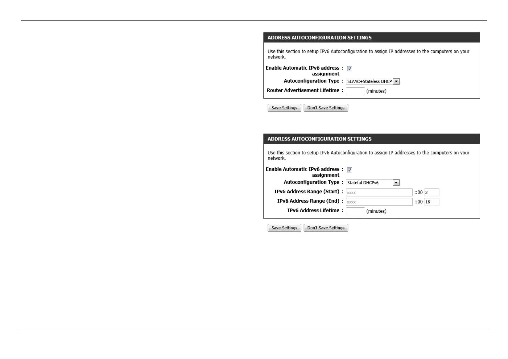 IPv6 Address Lifetime: After selecting Stateful DHCPv6 as the auto-configuration
