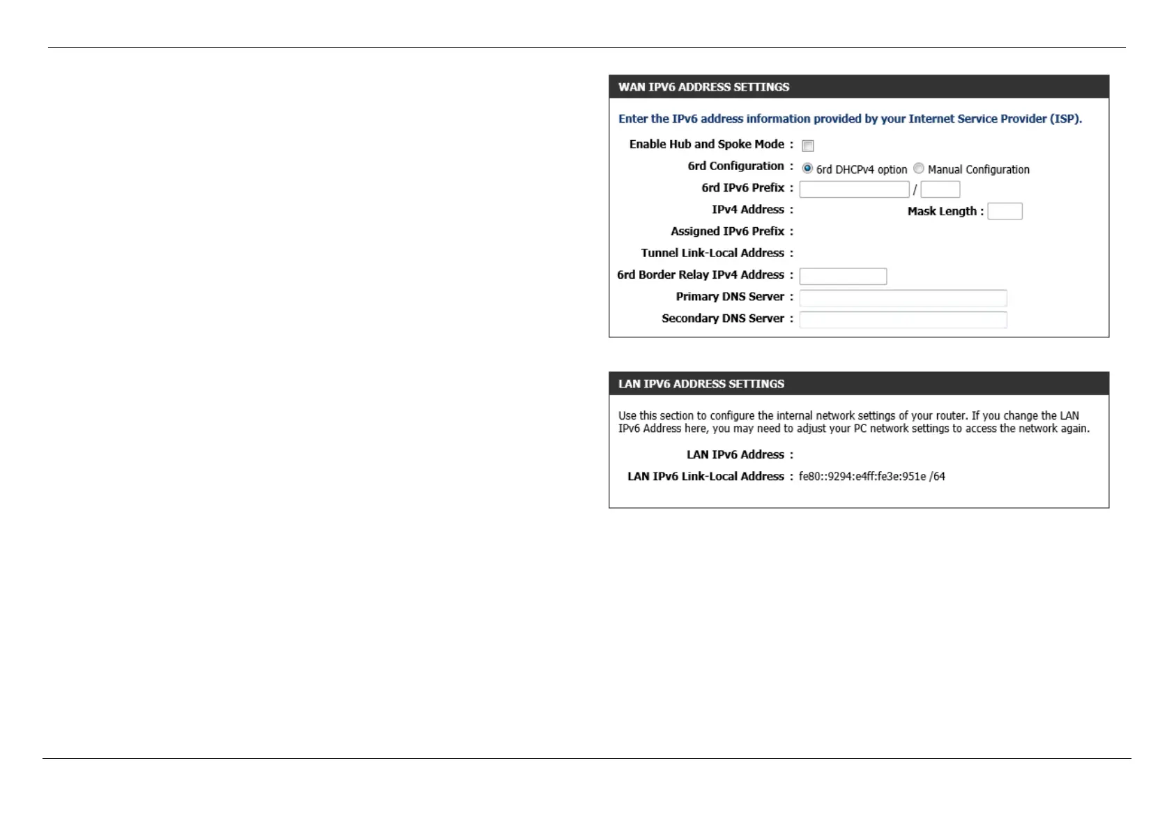 6rd Configuration: Select the 6rd configuration option here. Options to choose