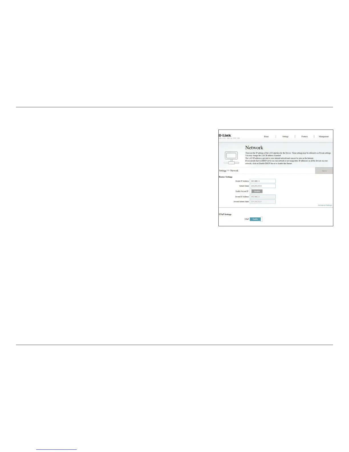 and to congure the DHCP settings. To access this page, click Network from