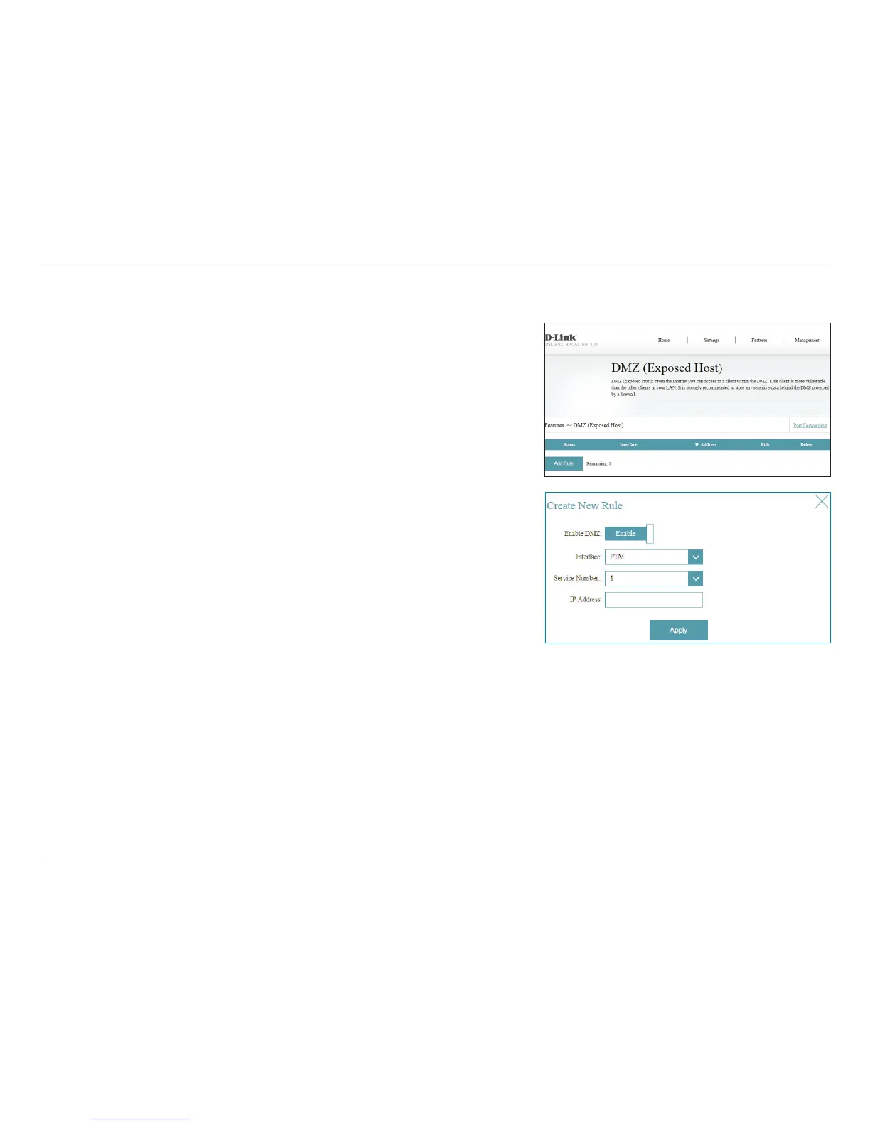 place up to 8 devices in the DMZ. If you wish to remove a DMZ rule, click on its
