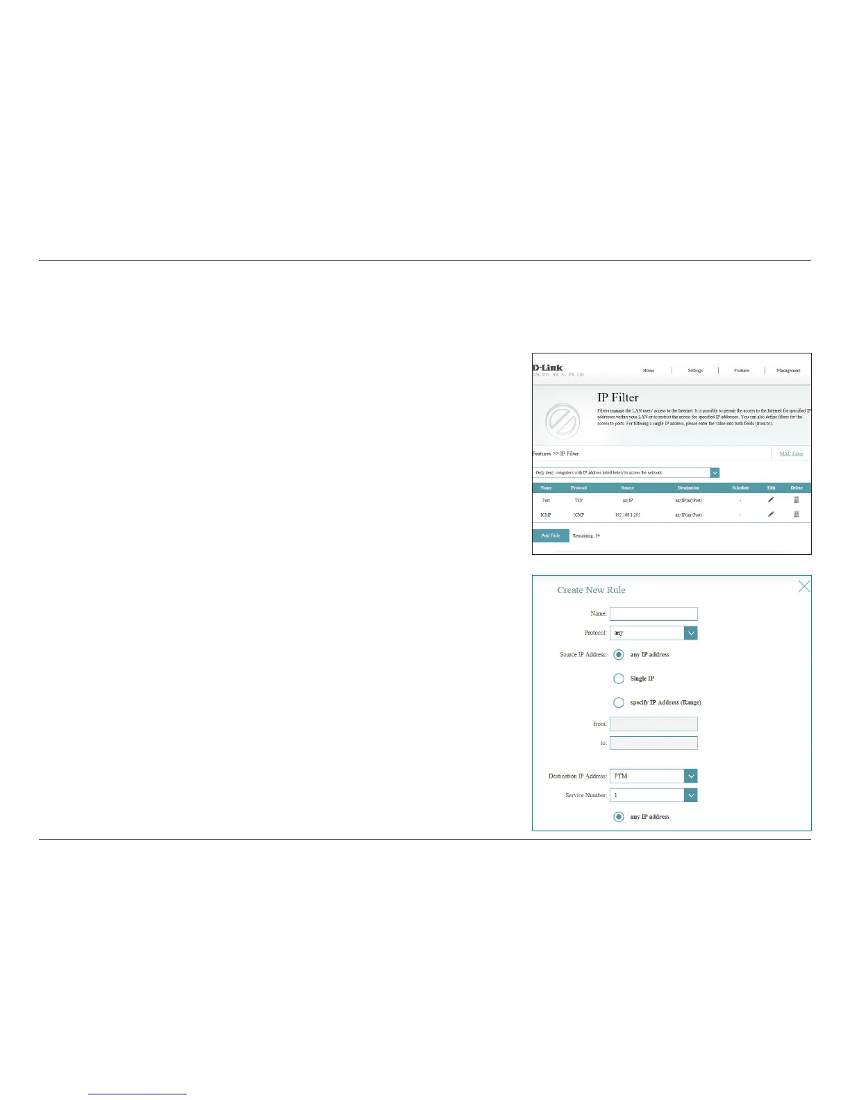 16 IP ltering rules. If you wish to remove a rule, click on its trash can icon in