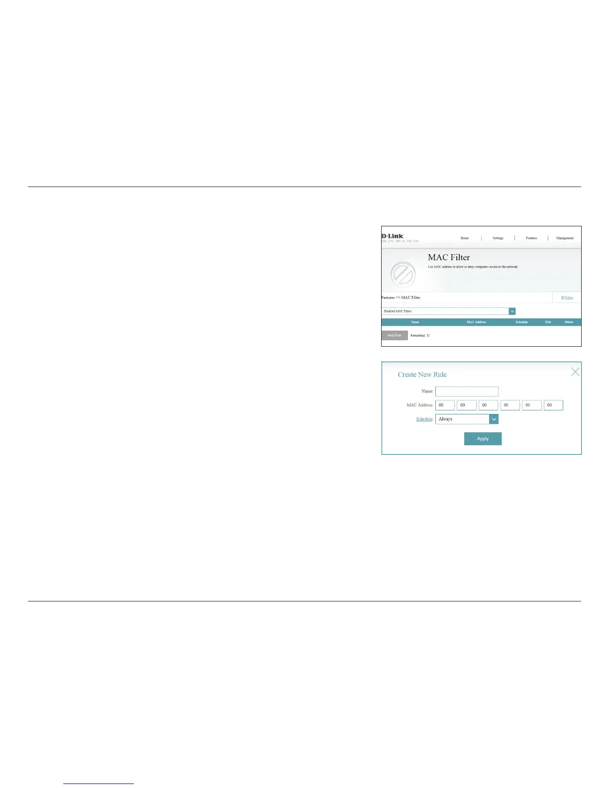 to 32 MAC ltering rules. If you wish to remove a rule, click on its trash can icon