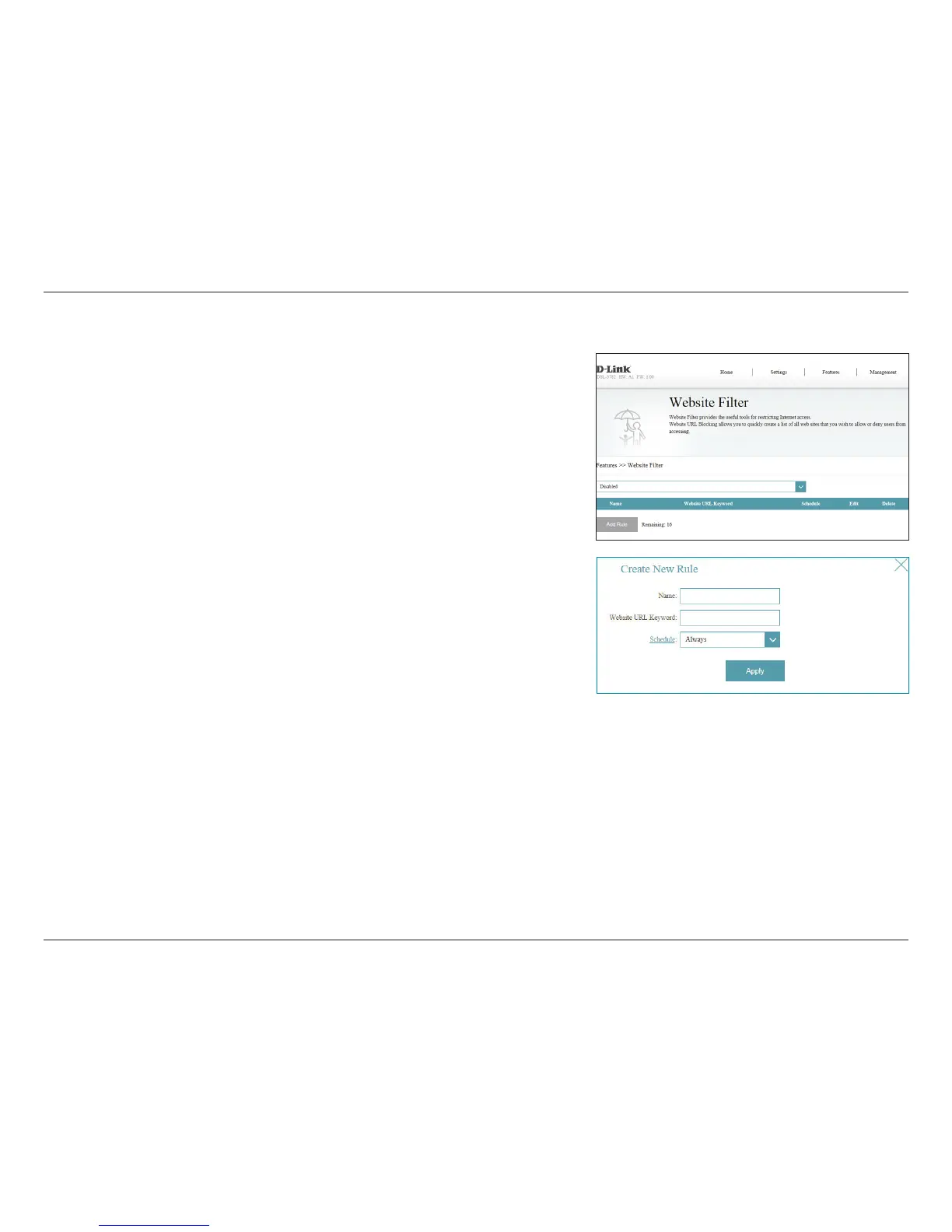 If you enable Web Filtering, click Add Rule to create a new Web Filtering