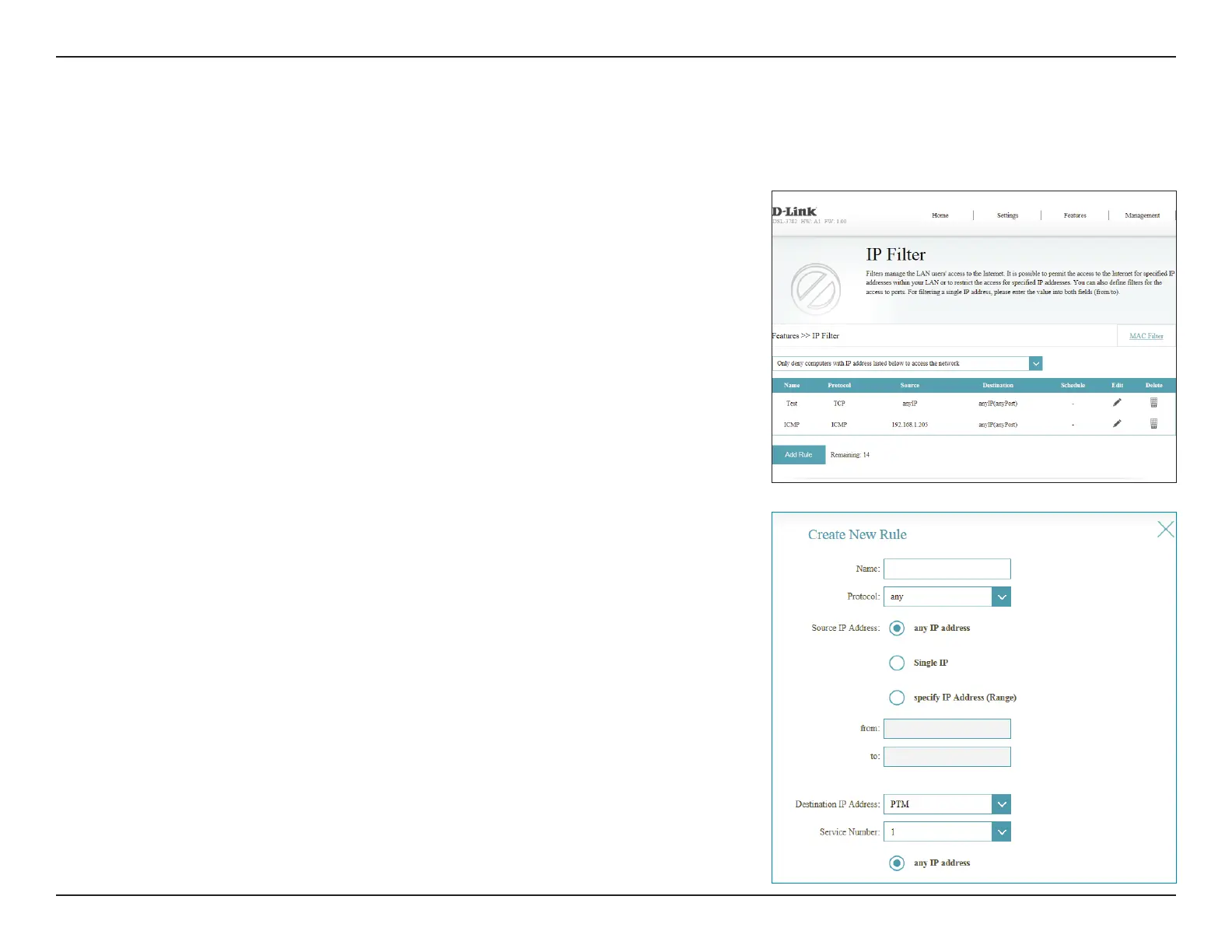 16 IP ltering rules. If you wish to remove a rule, click on its trash can icon in