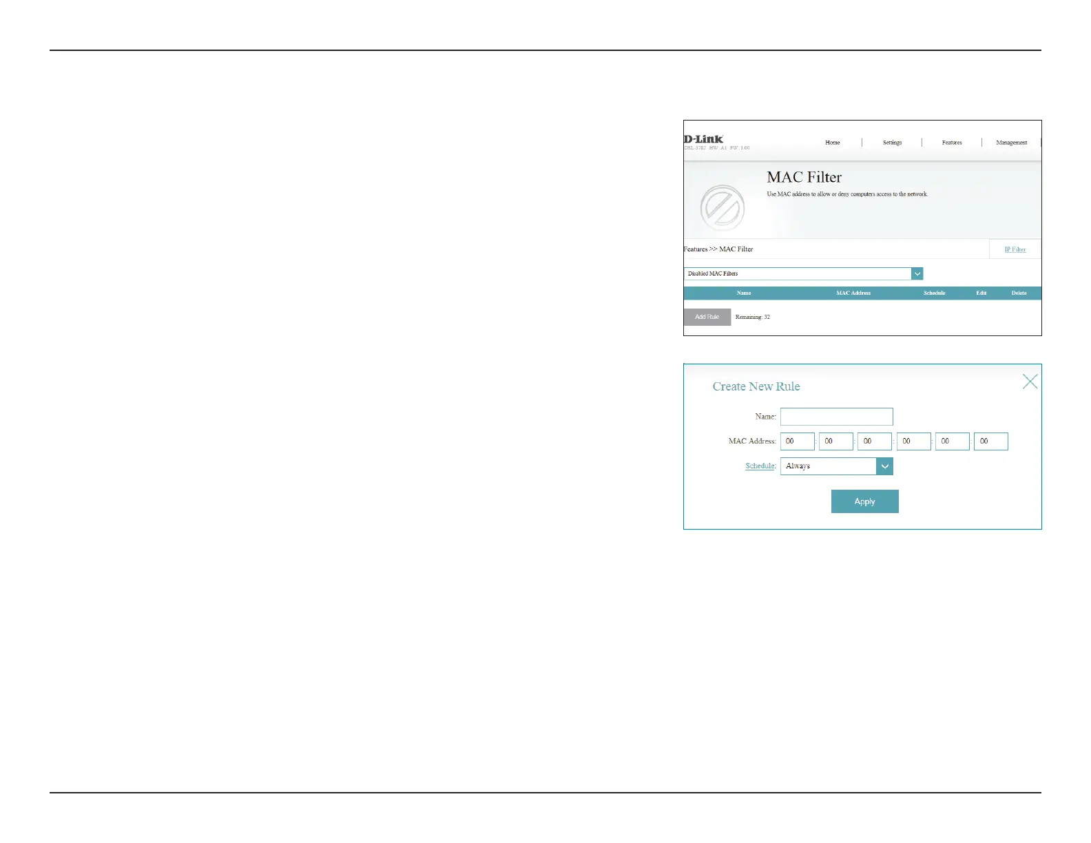 to 32 MAC ltering rules. If you wish to remove a rule, click on its trash can icon
