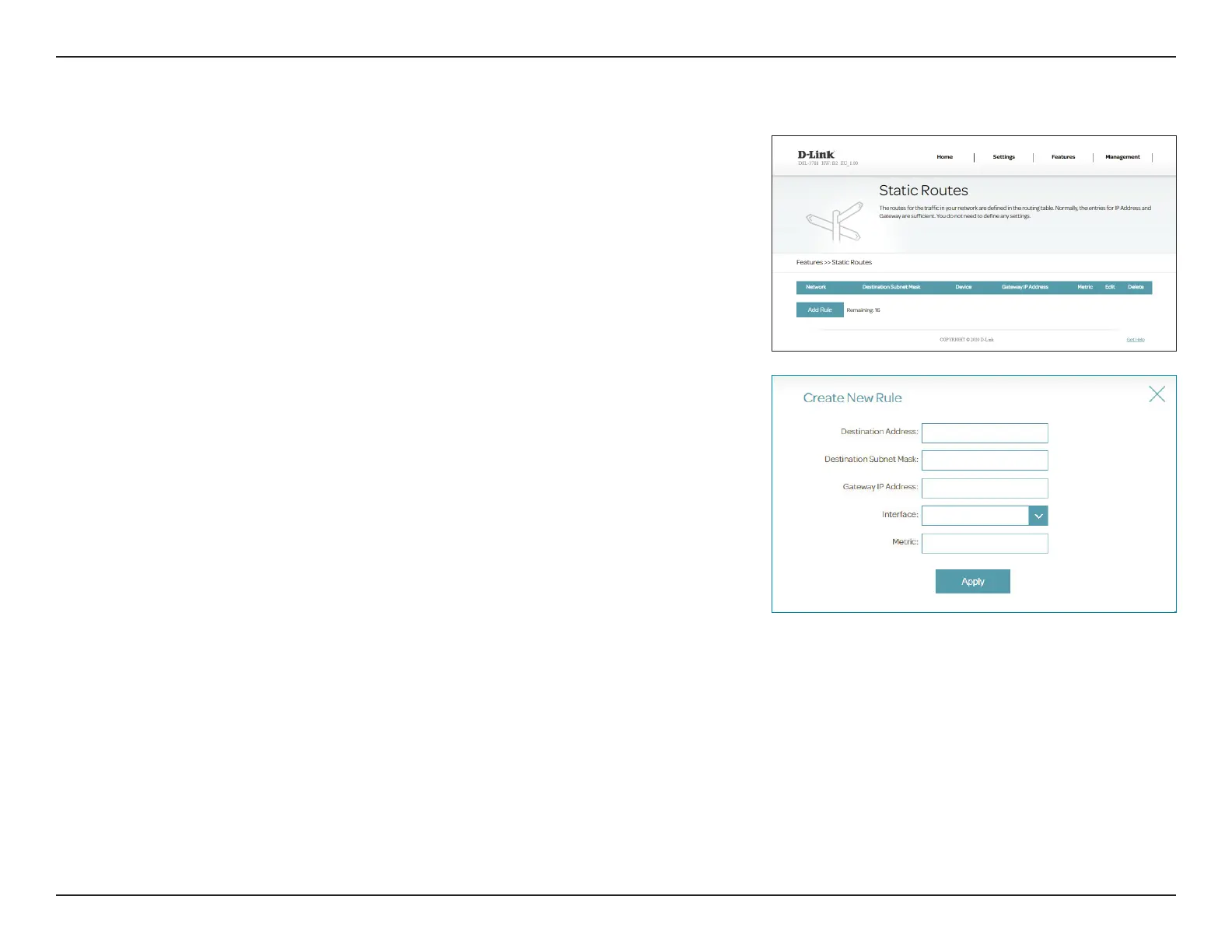 The Static Routes section allows you to dene custom routes to control how