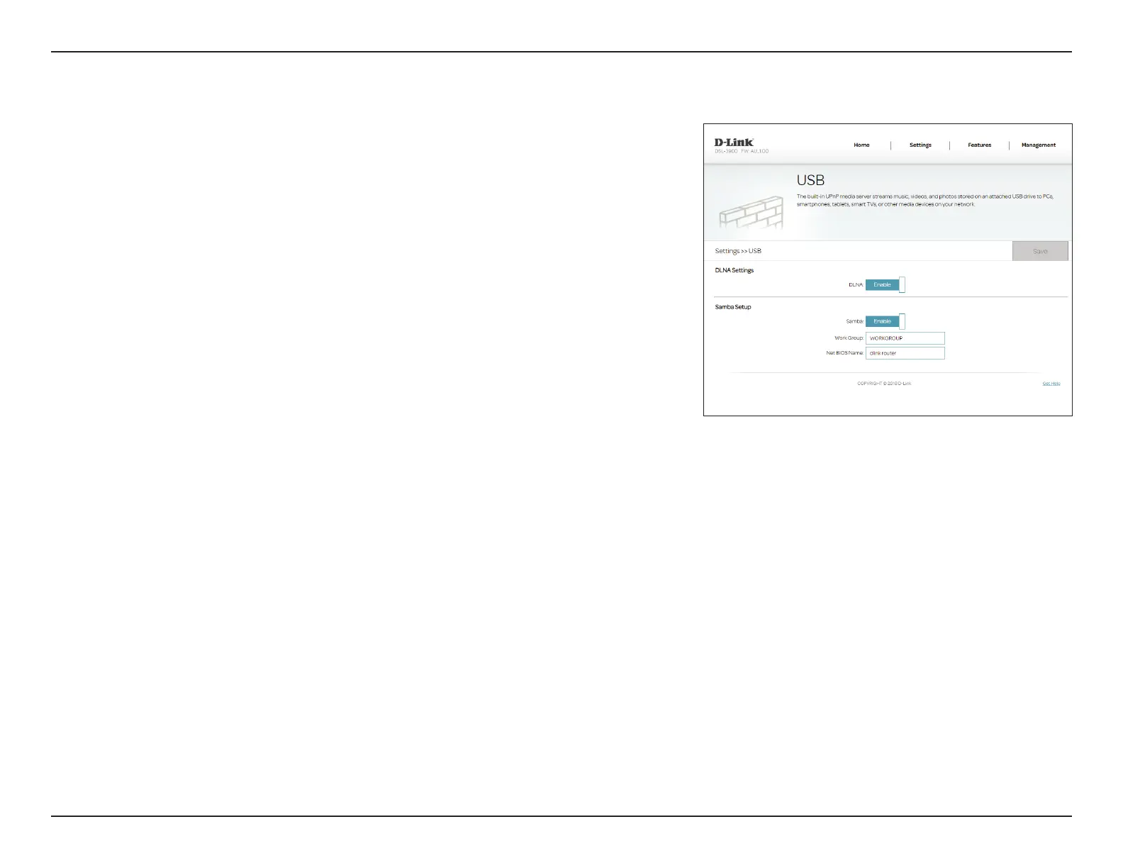 DLNA: Enable or disable the DLNA media server functions, allowing