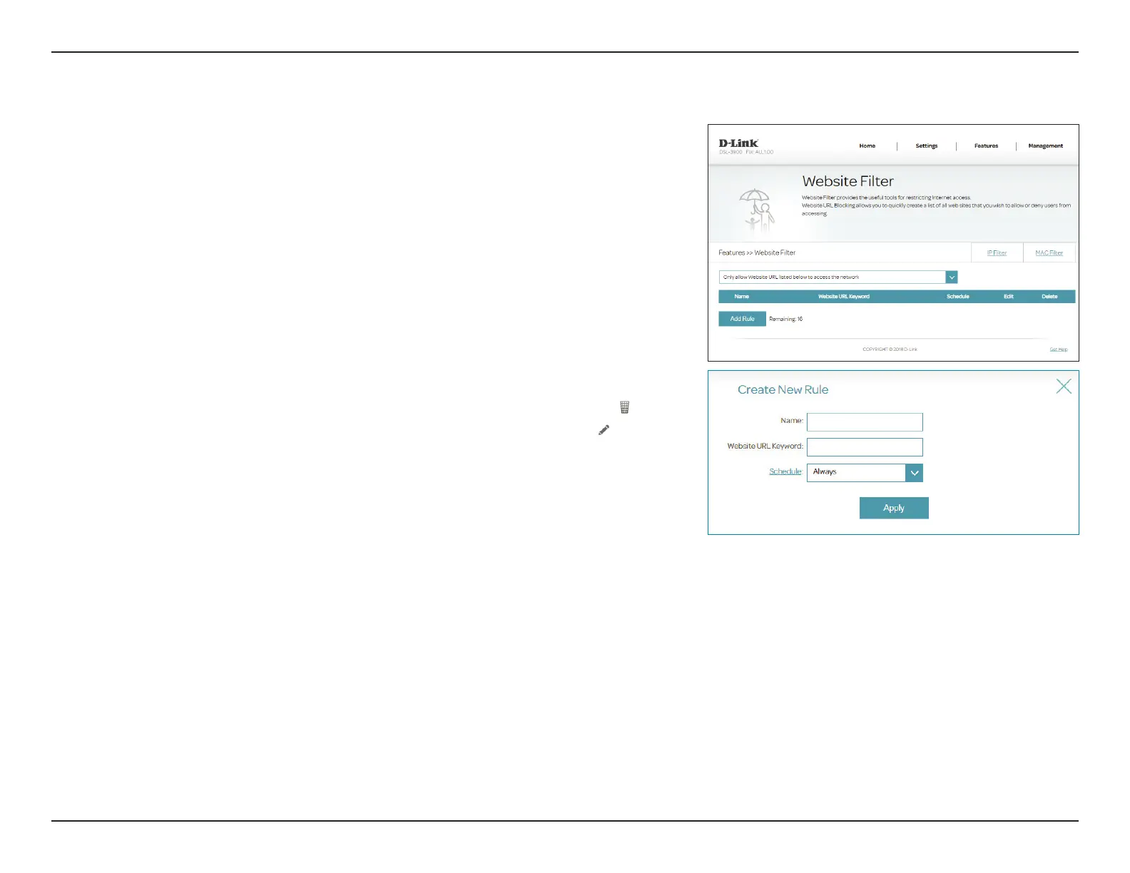 If you enable Web Filtering, click Add Rule to create a new Web Filtering