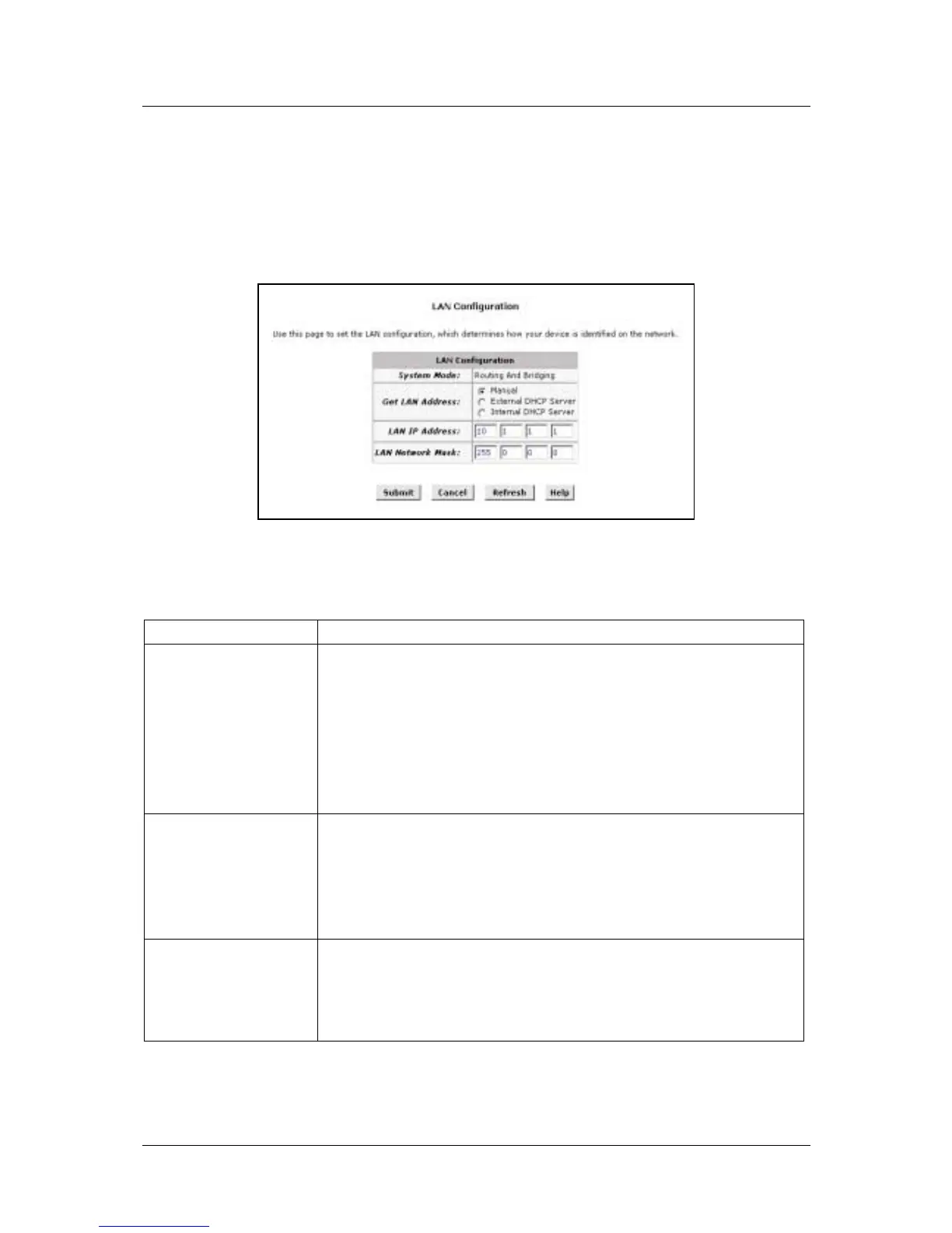 for your LAN. Click the LAN hyperlink view the LAN Configuration menu. This menu can also be accessed