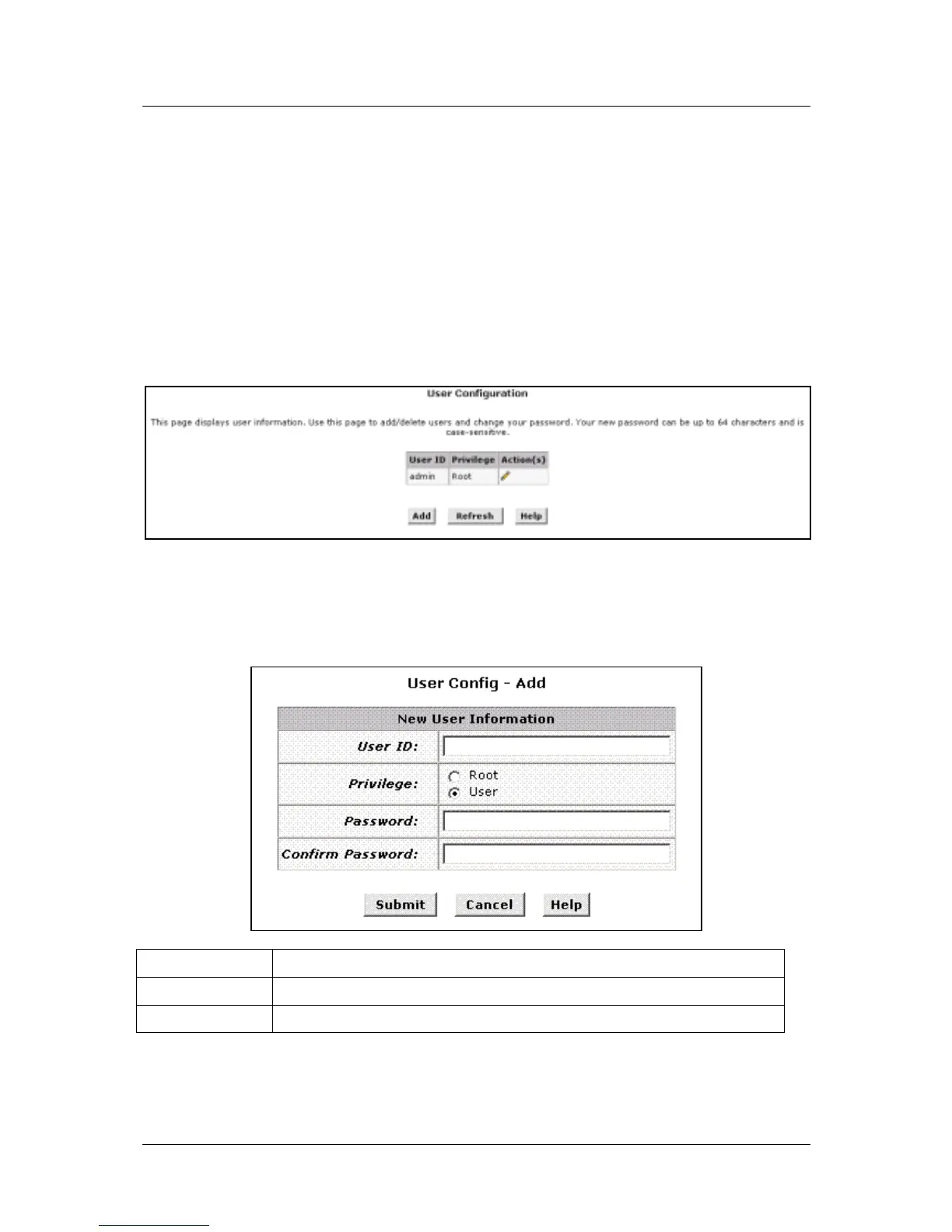 To change user name and password used for management privileges, log into the Configuration Manager, click
