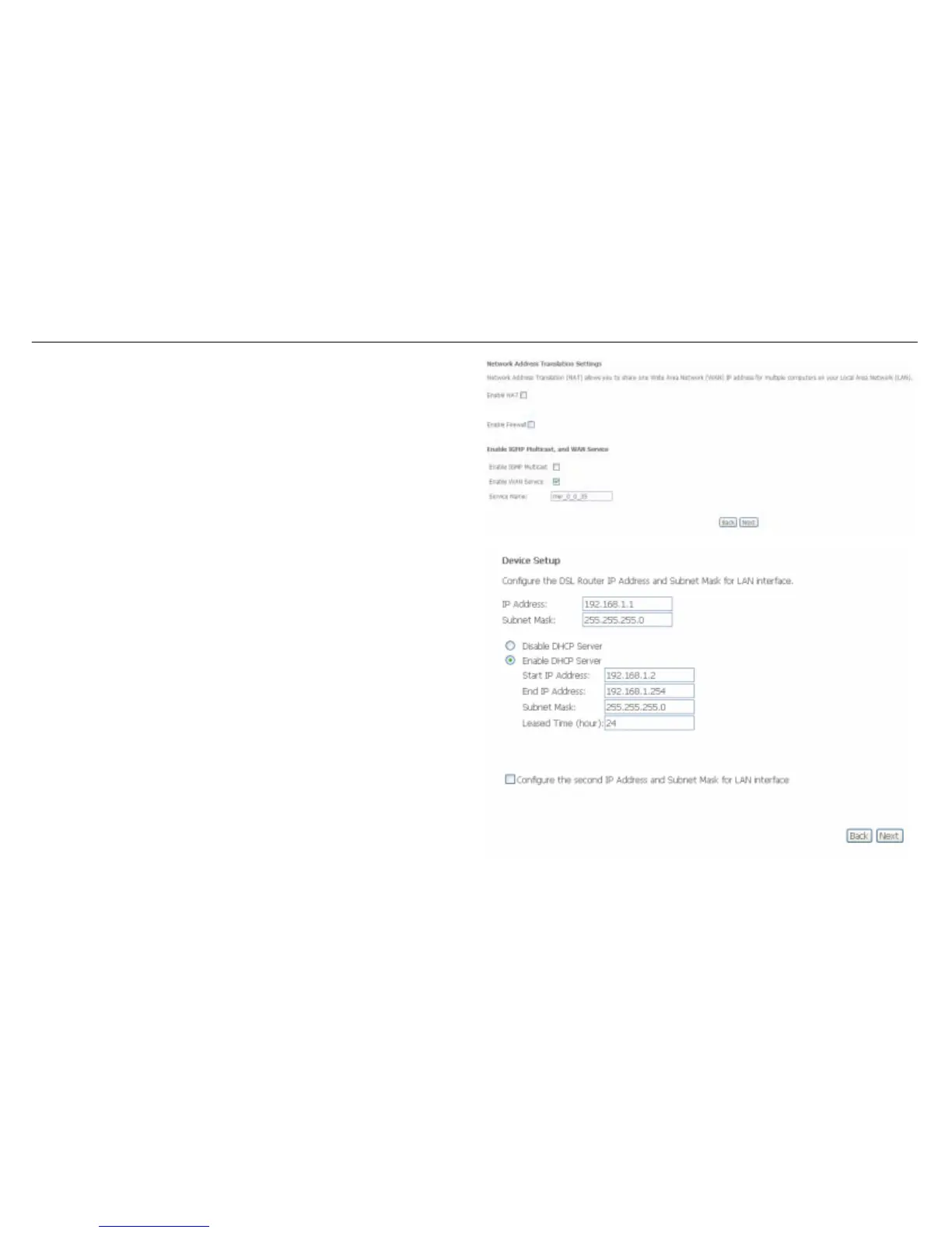 To enable the DHCP server, enter a starting IP address, an ending IP