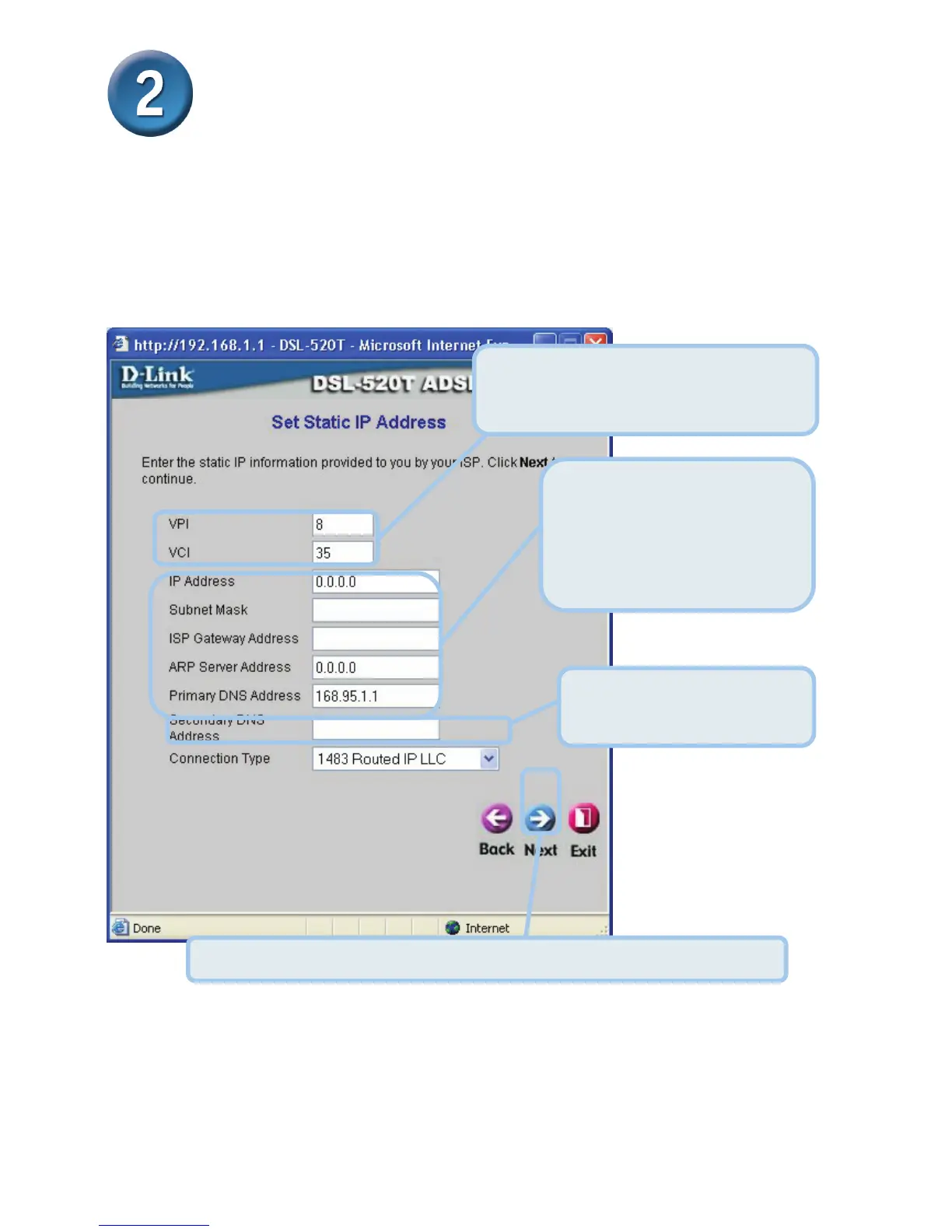 instructed by your ISP. Type the new