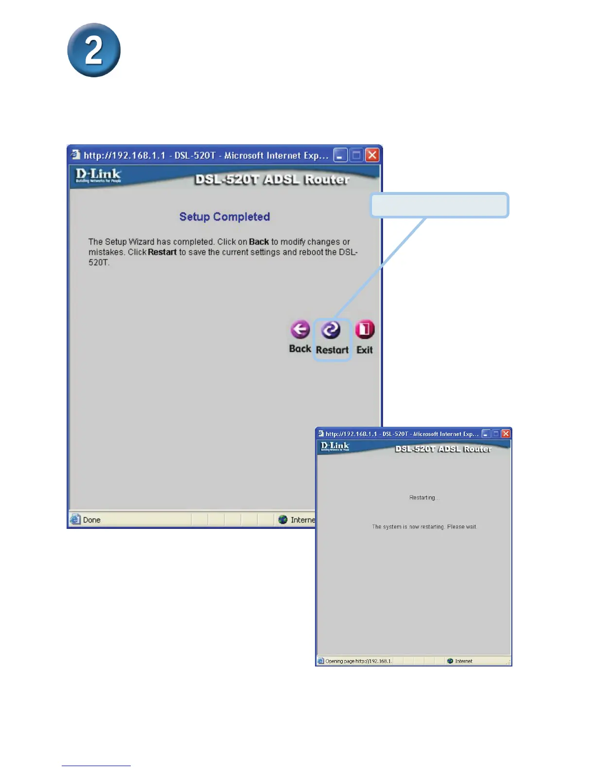 the new settings and restart the Router. It will take about two minutes to restart the Router.