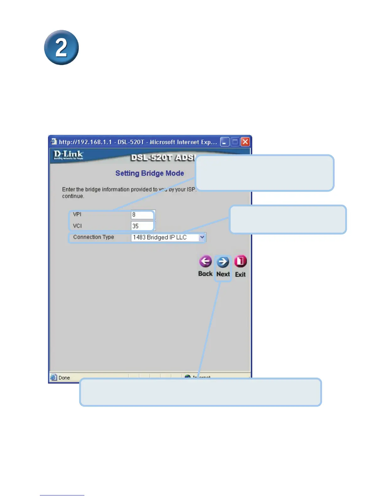инкапсуляции в поле Connection Type. Введите новые значения VPI и VCI в