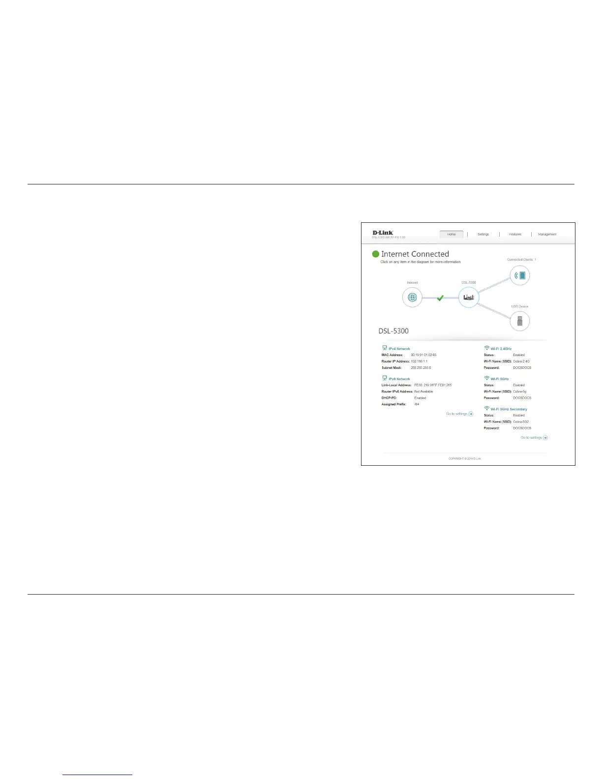 Click on the DSL-5300 icon to view details about the router and its wireless settings.