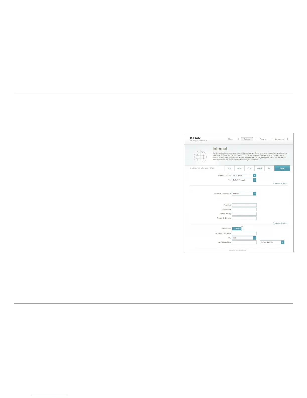 Select Static IP if your IP information is provided by your Internet Service Provider (ISP).