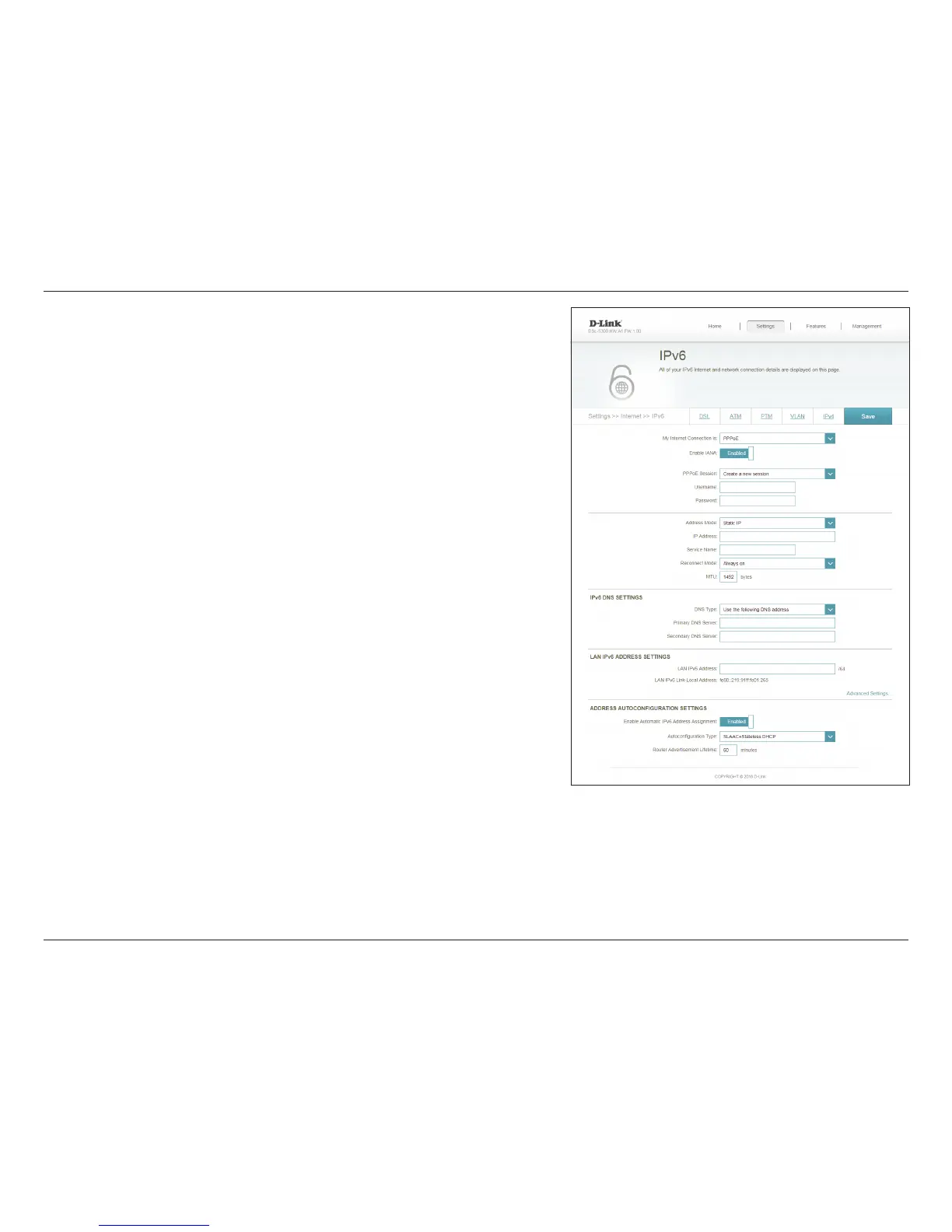 Enter the LAN (local) IPv6 address for the router.