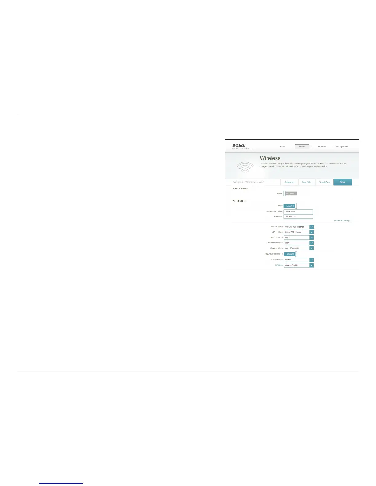wireless conguration options. To congure the router’s guest zone, click the Guest