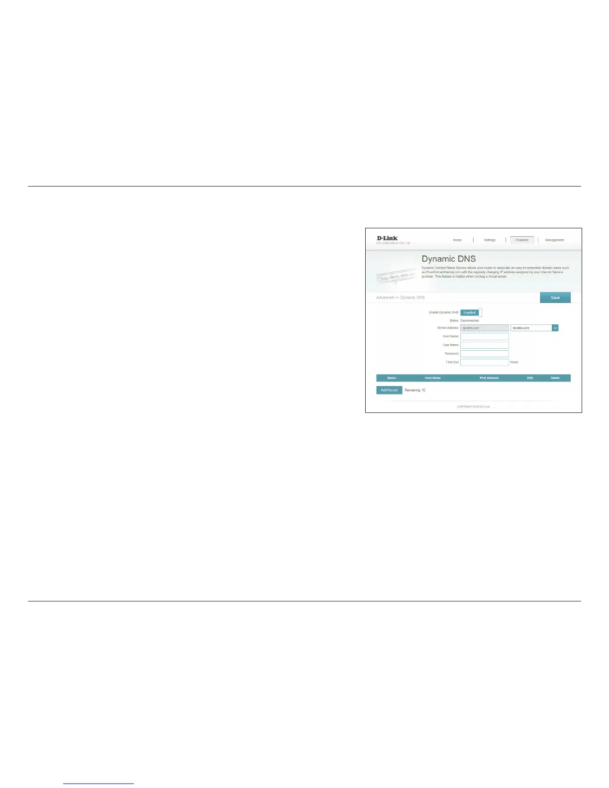 In the Features menu on the bar on the top of the page, click Dynamic DNS.
