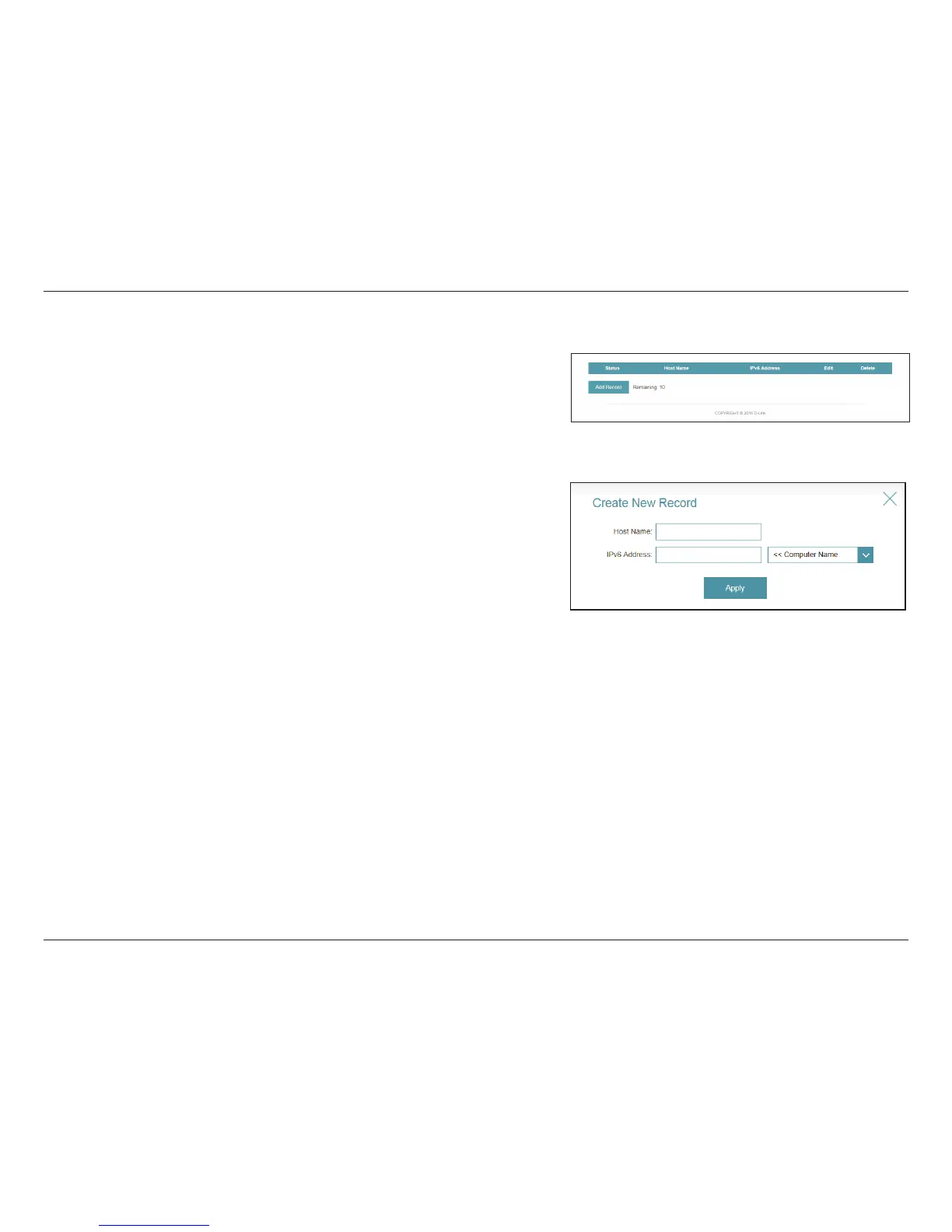 The IPv6 host settings are found at the bottom of the Dynamic DNS page.