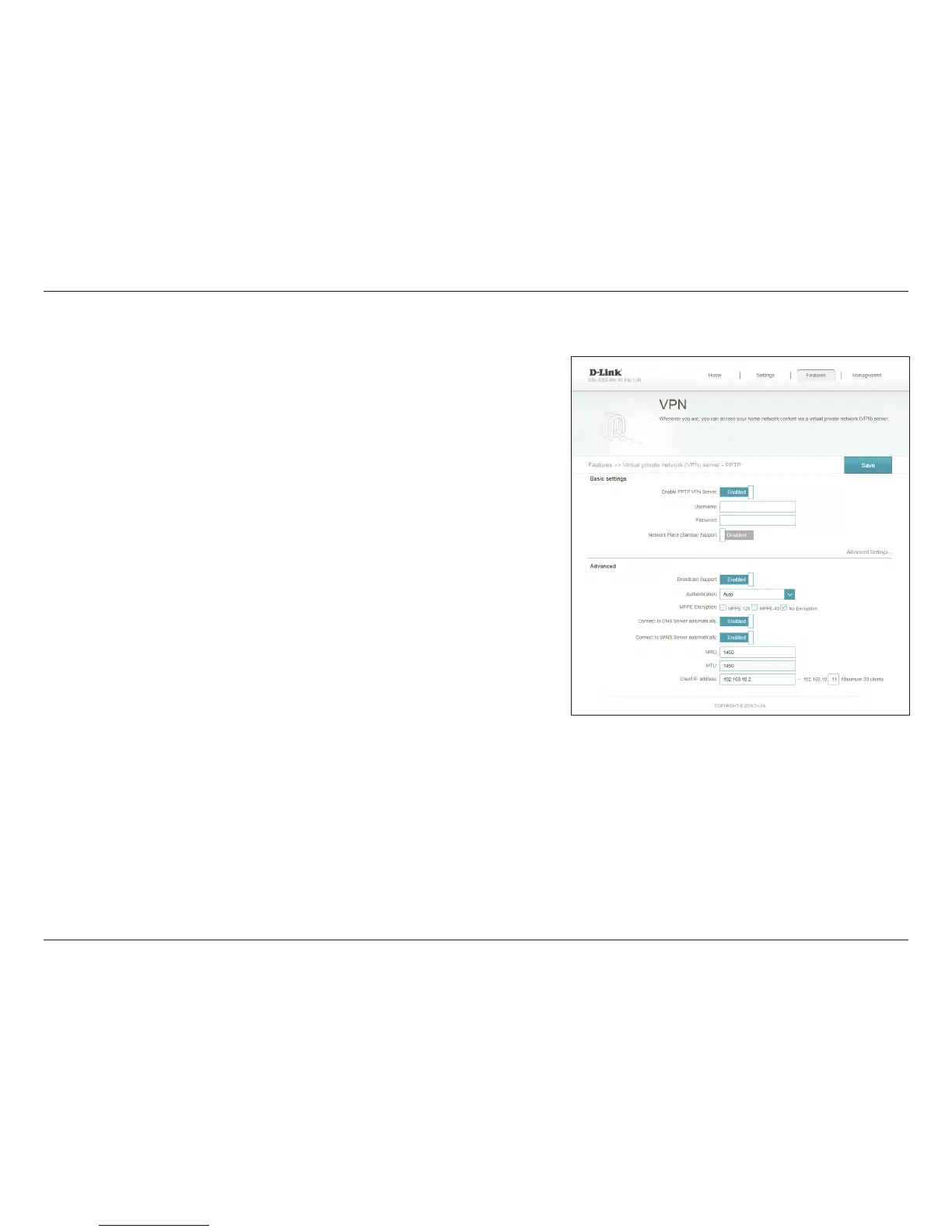 This page allows you to congure the DSL-5300 as a VPN server. We recommend