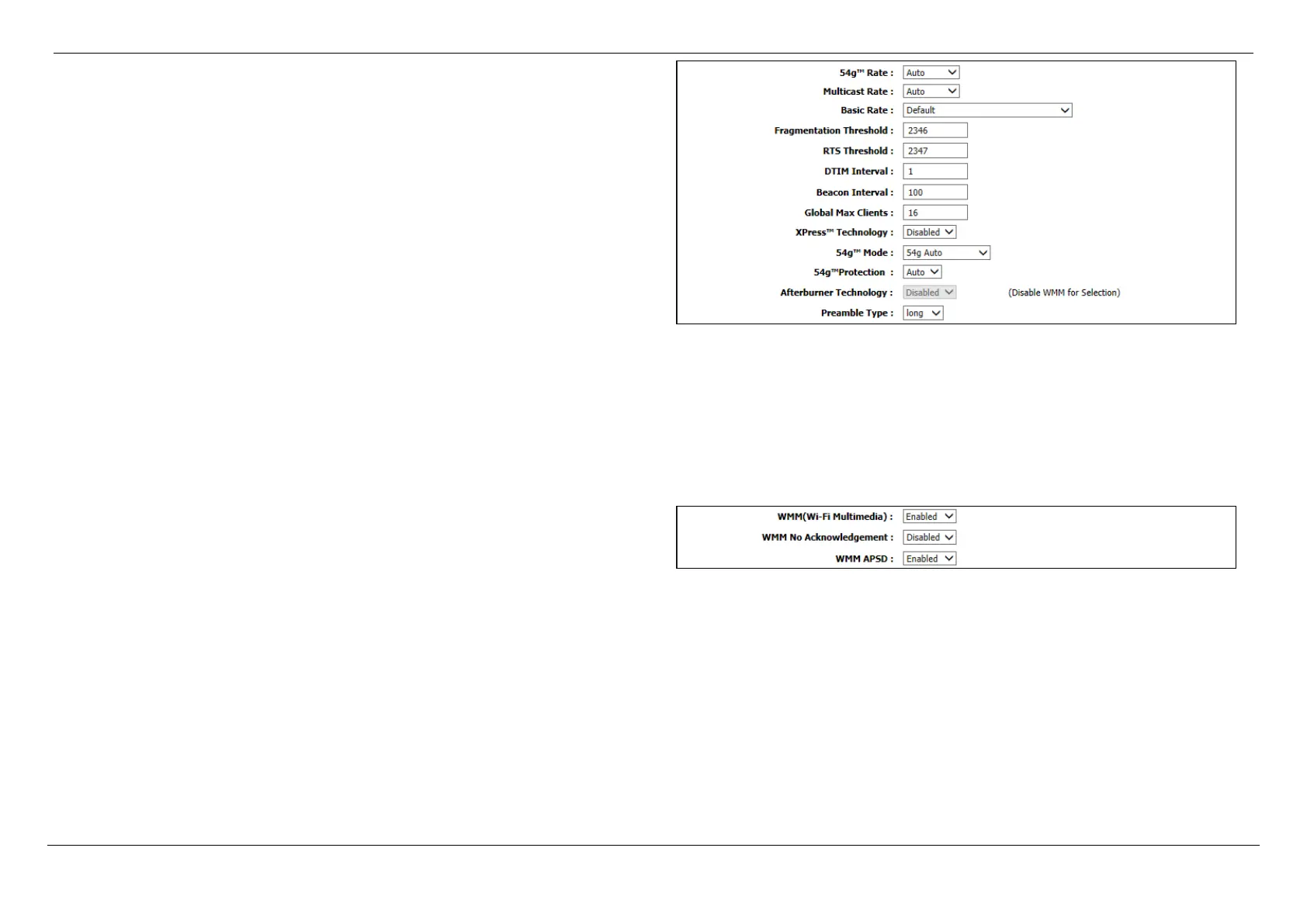 54g™ Rate: Select the 54g™ rate value used here. This option becomes available