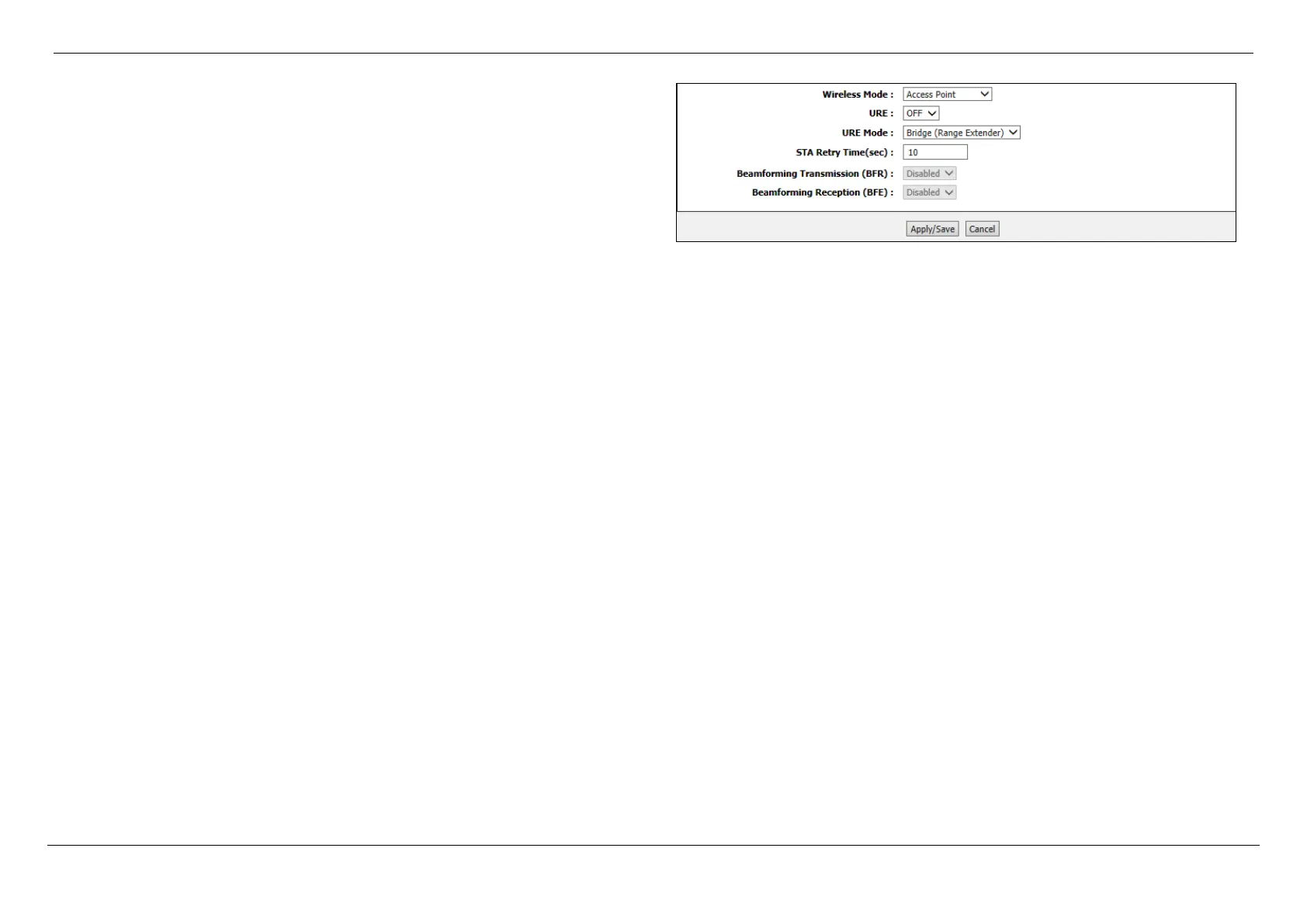 Beamforming Transmission (BFR): Select the WMM APSD state here. Options to