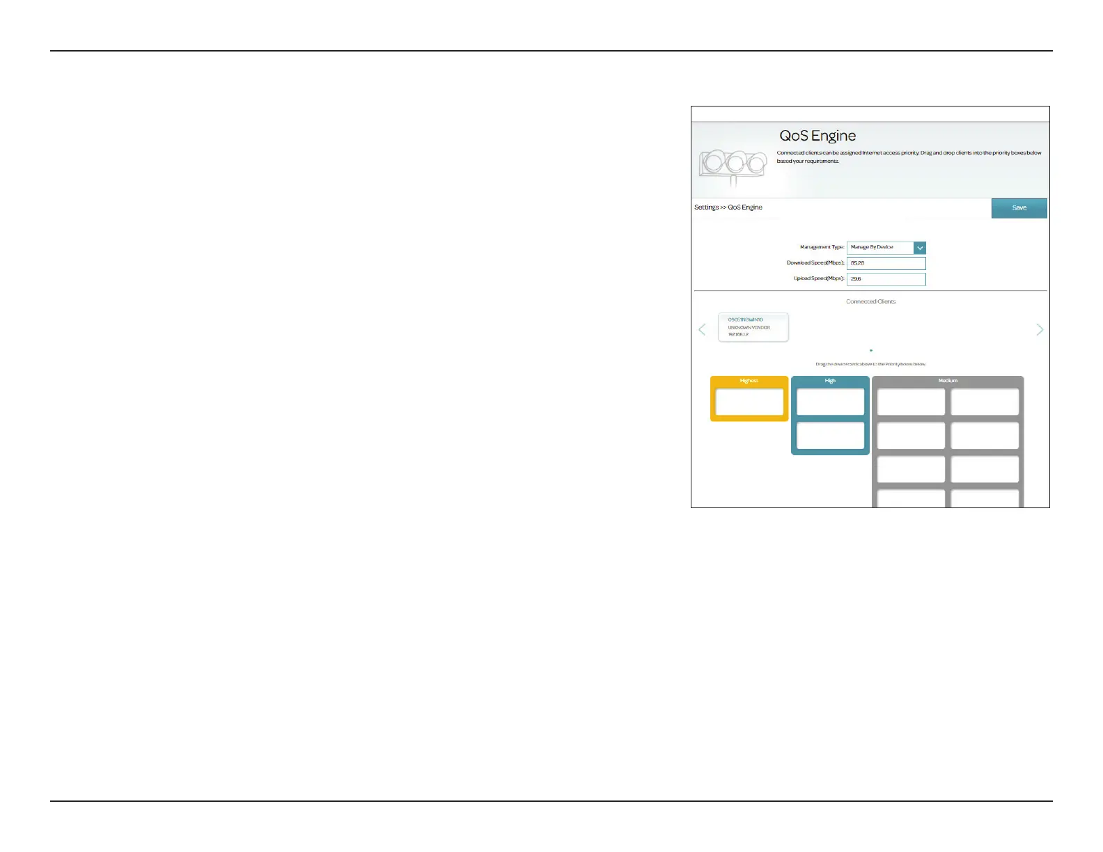 The QoS Engine allows you to assign priorities to designated clients. Go