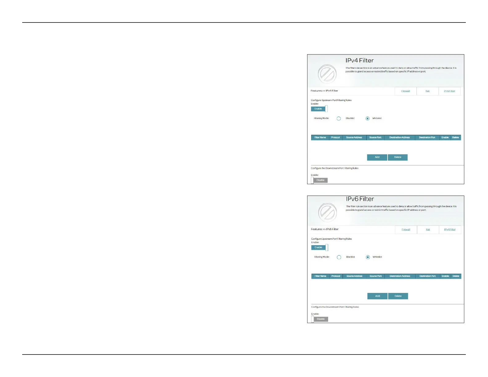 Go to Features > Firewall, then click the IPv4 Filter tab or the IPv6 Filter tab to congure