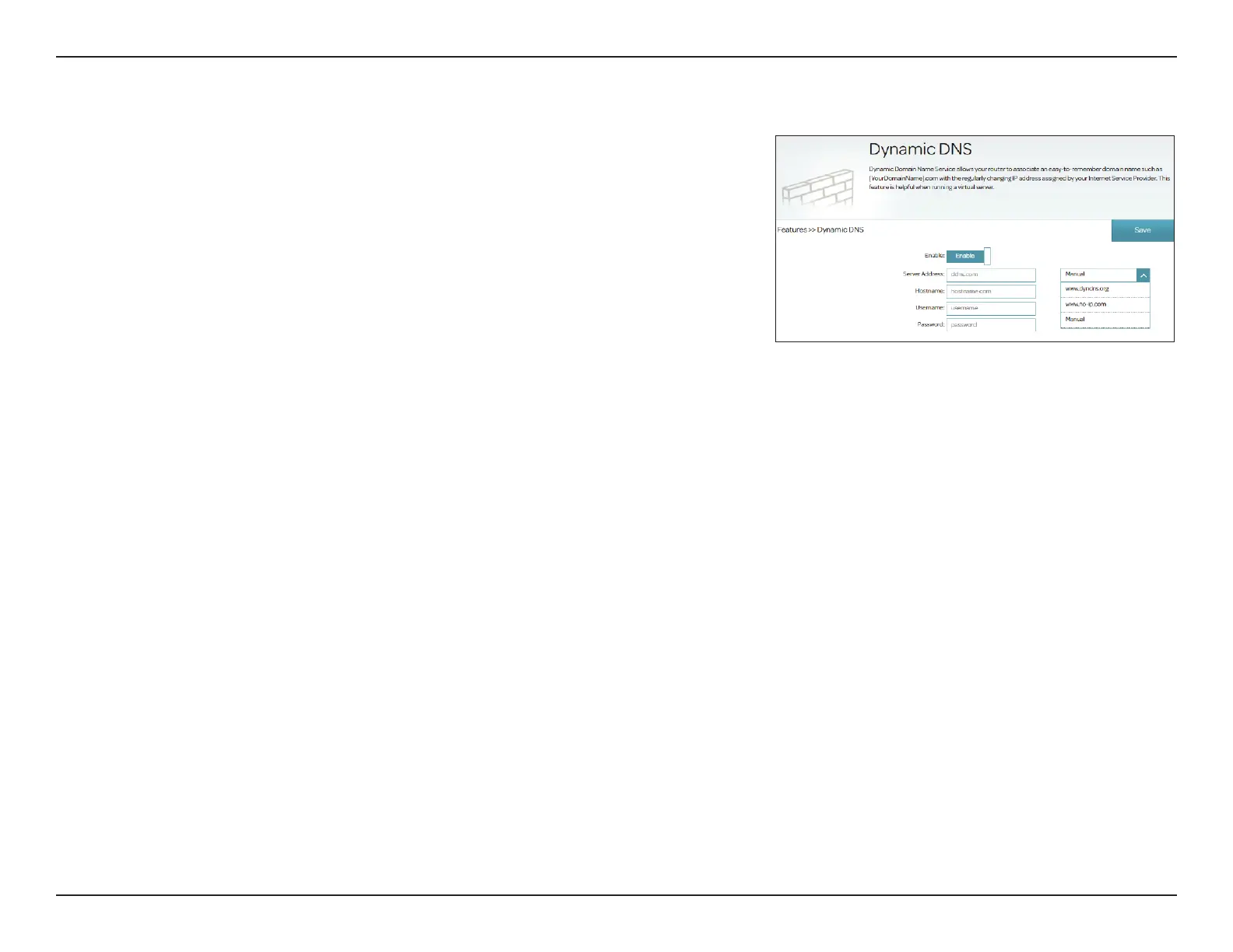 com. Select Manual to enter your DDNS service address manually.
