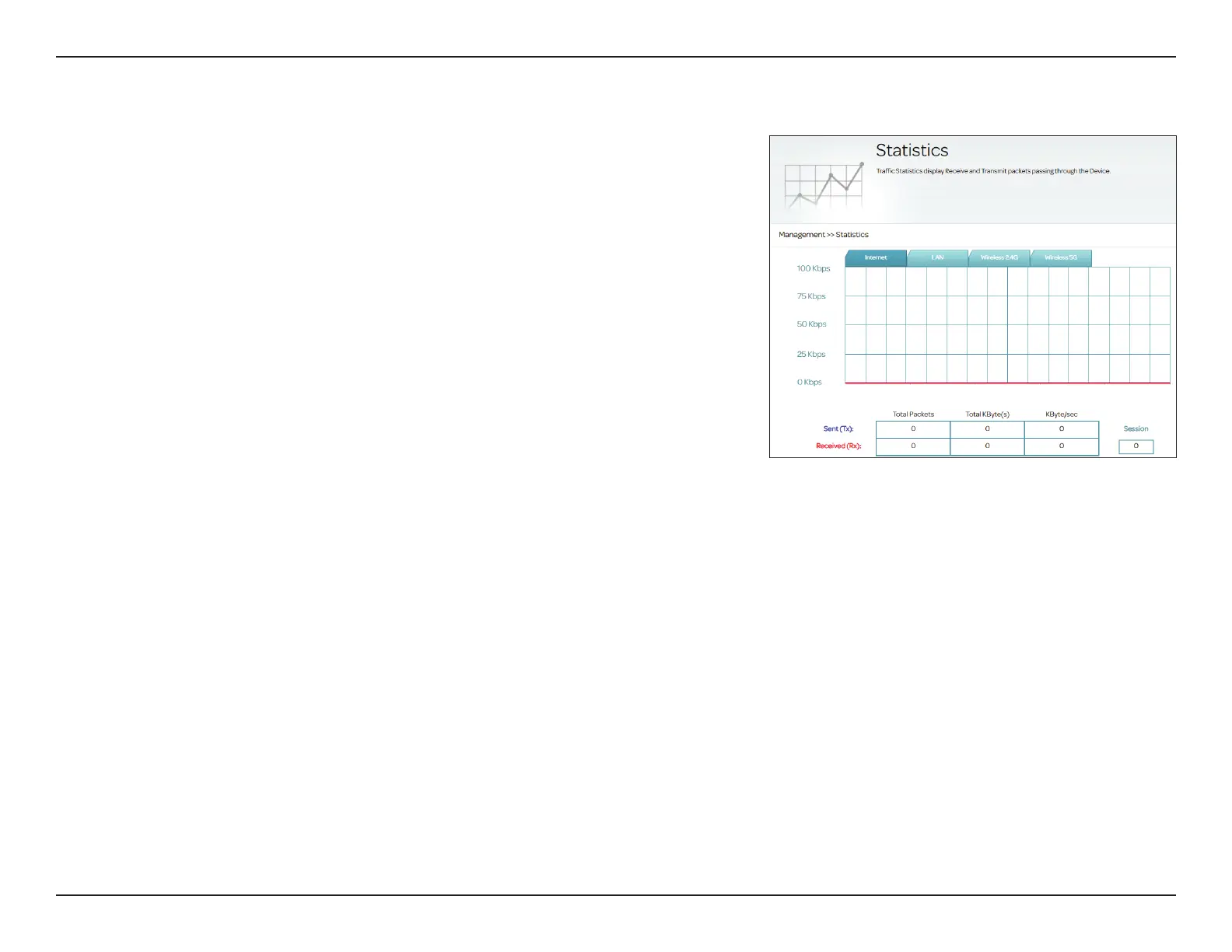 You can view the statistics of the Internet, LAN, Wireless 2.4 GHz, or Wireless