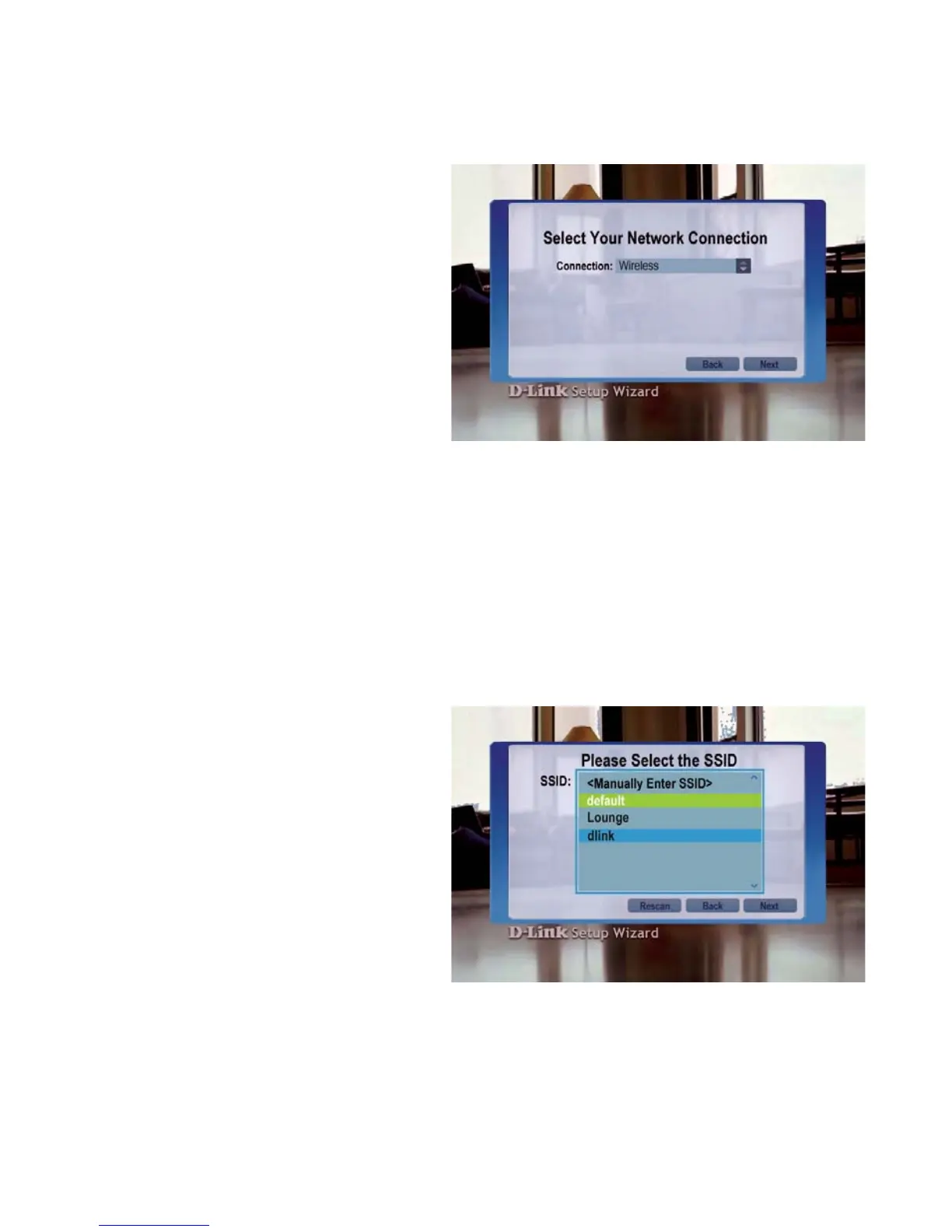 The Rescan button will refresh the list of available networks. Use the left arrow