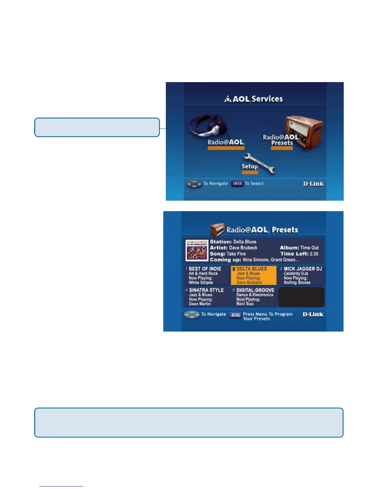Preset Radio stations are available here. Use the arrow buttons on your remote