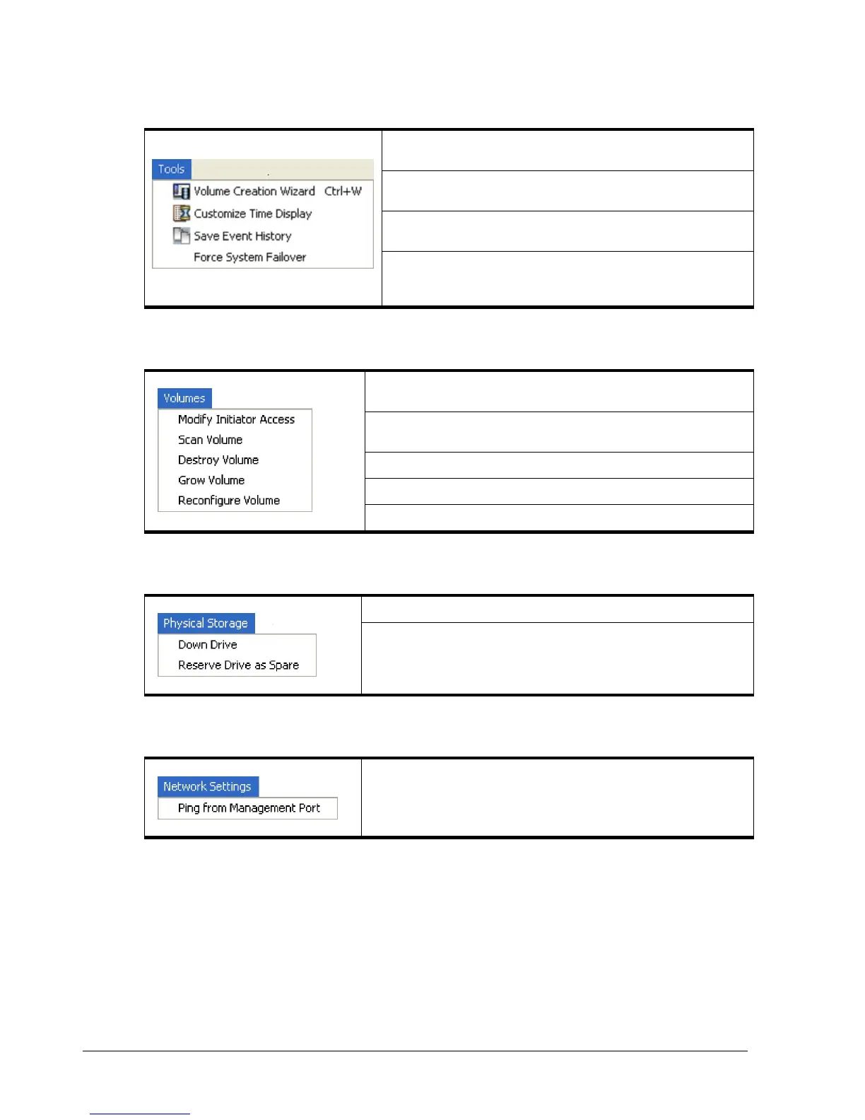 Reconfigure Volume – reconfigures a volume configuration (see section 4.3.5).
