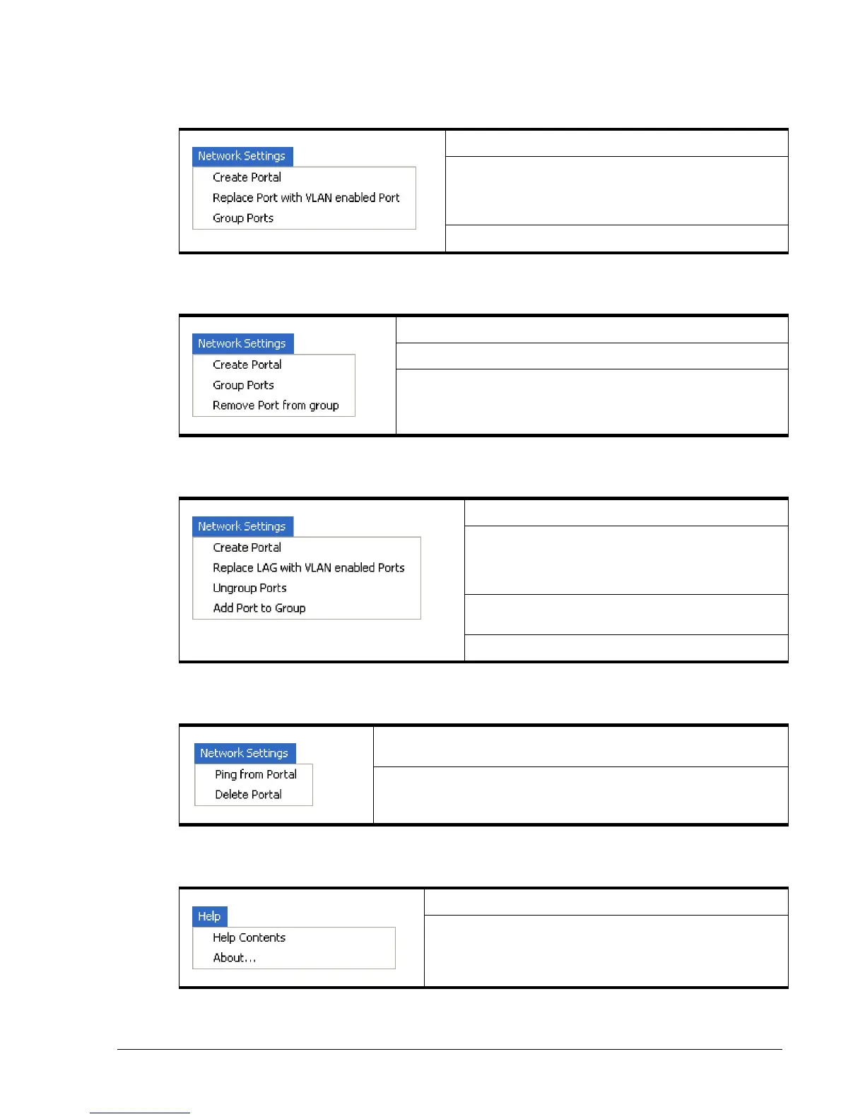 Delete Portal – removes the portal from the network port (see section Error!