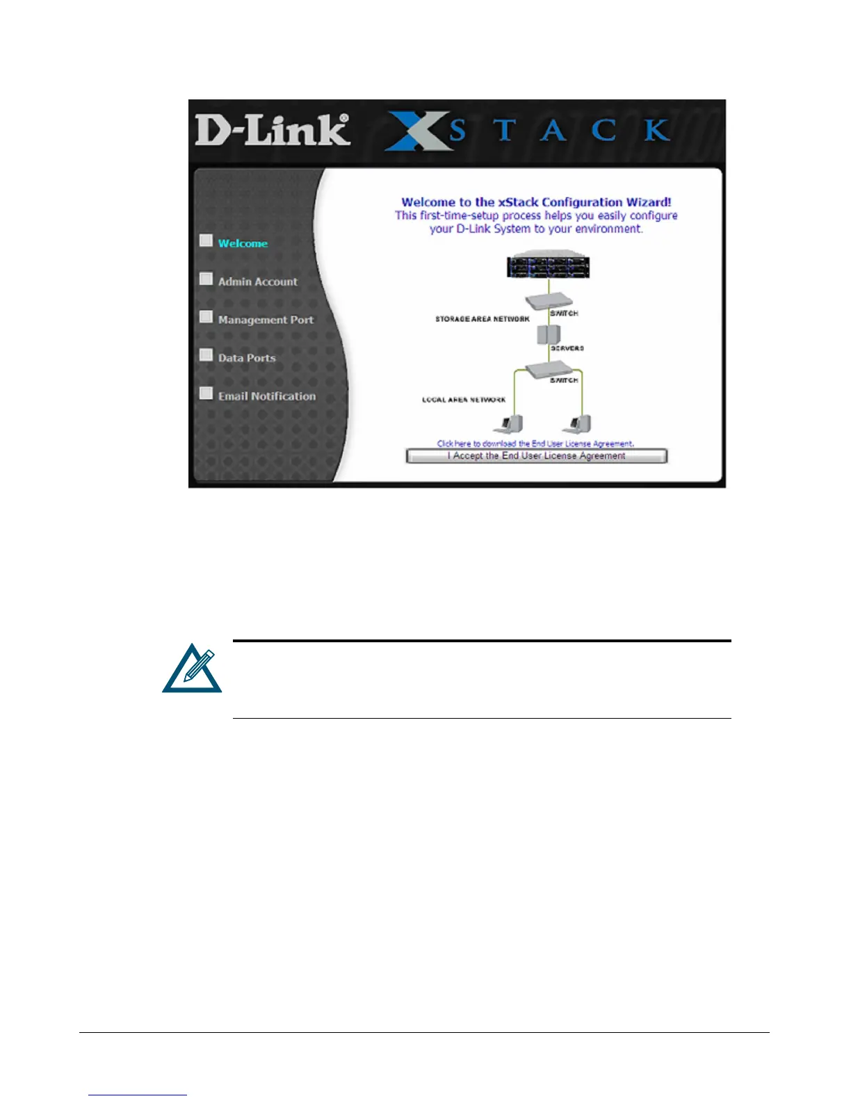 From the Welcome page, perform the following steps to set up the xStack Storage system for