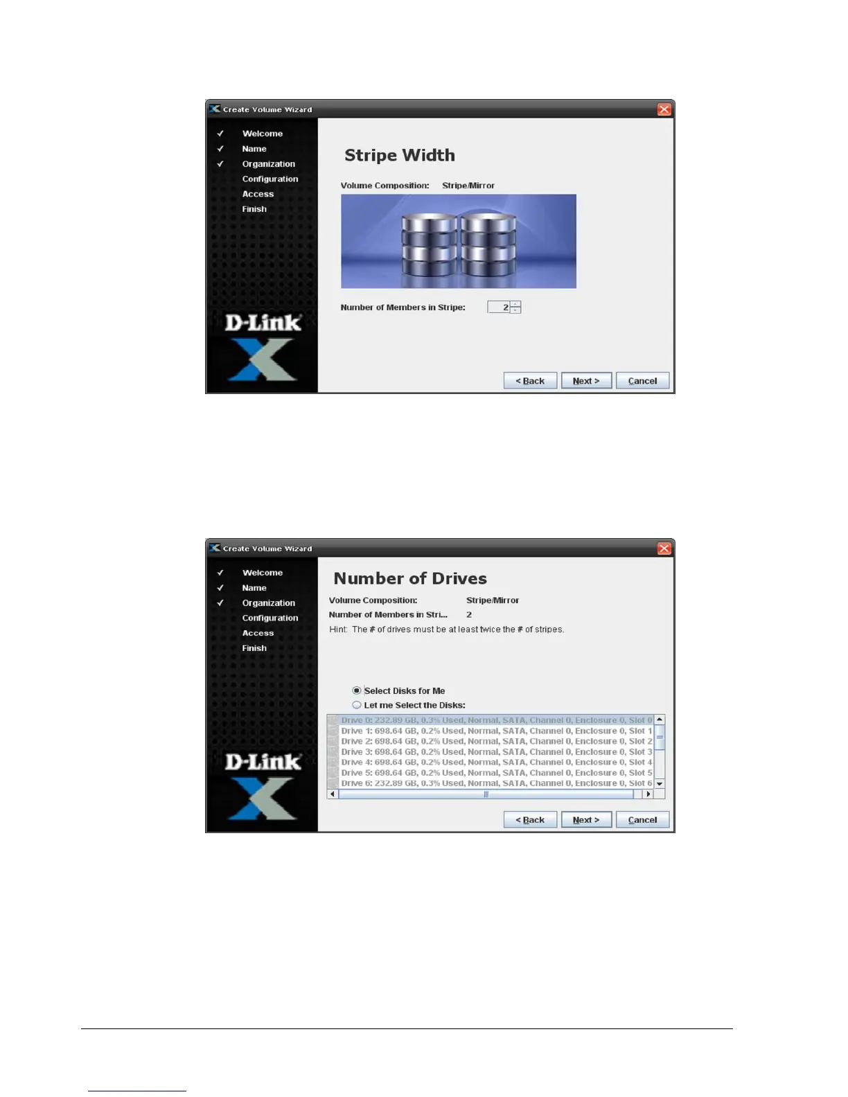 3. The Stripe Width screen shows the volume composition selection you made in the