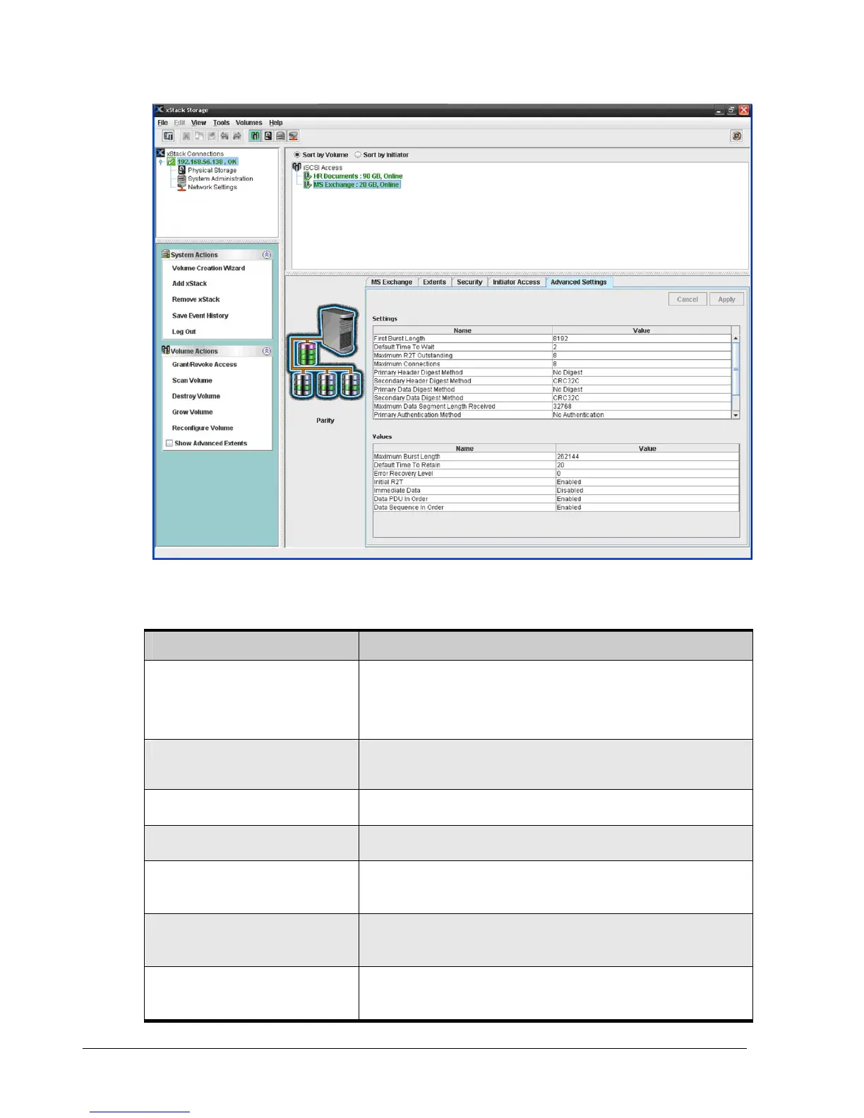 Table 4-2. Advanced Volume Settings