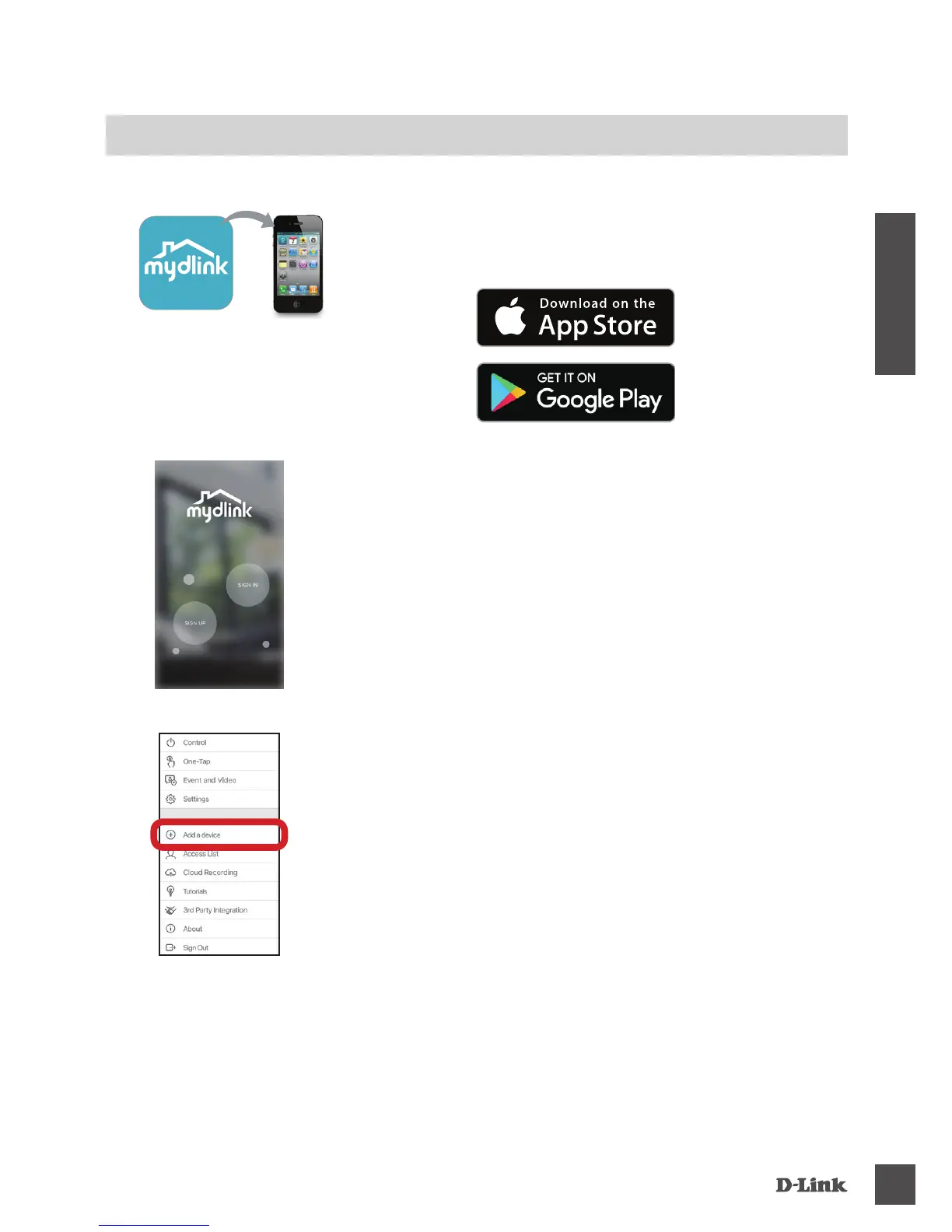 En su dispositivo móvil, descargue e instale la aplicación mydlink
