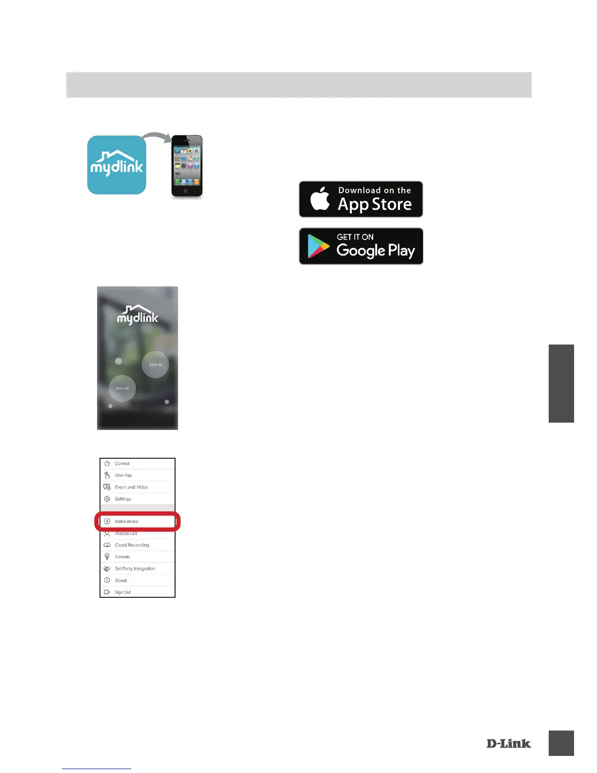 På din mobilenhed downloader og installerer du mydlink-app fra