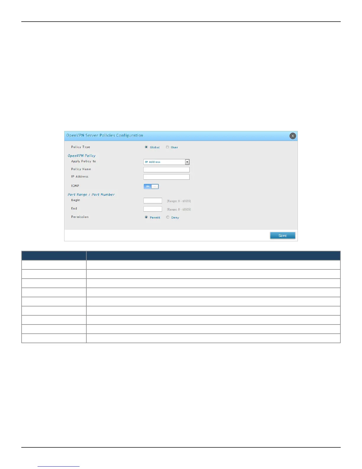 2. Click Add New OpenVPN Server Policy. This opens the OpenVPN Server Policy Conguration page.