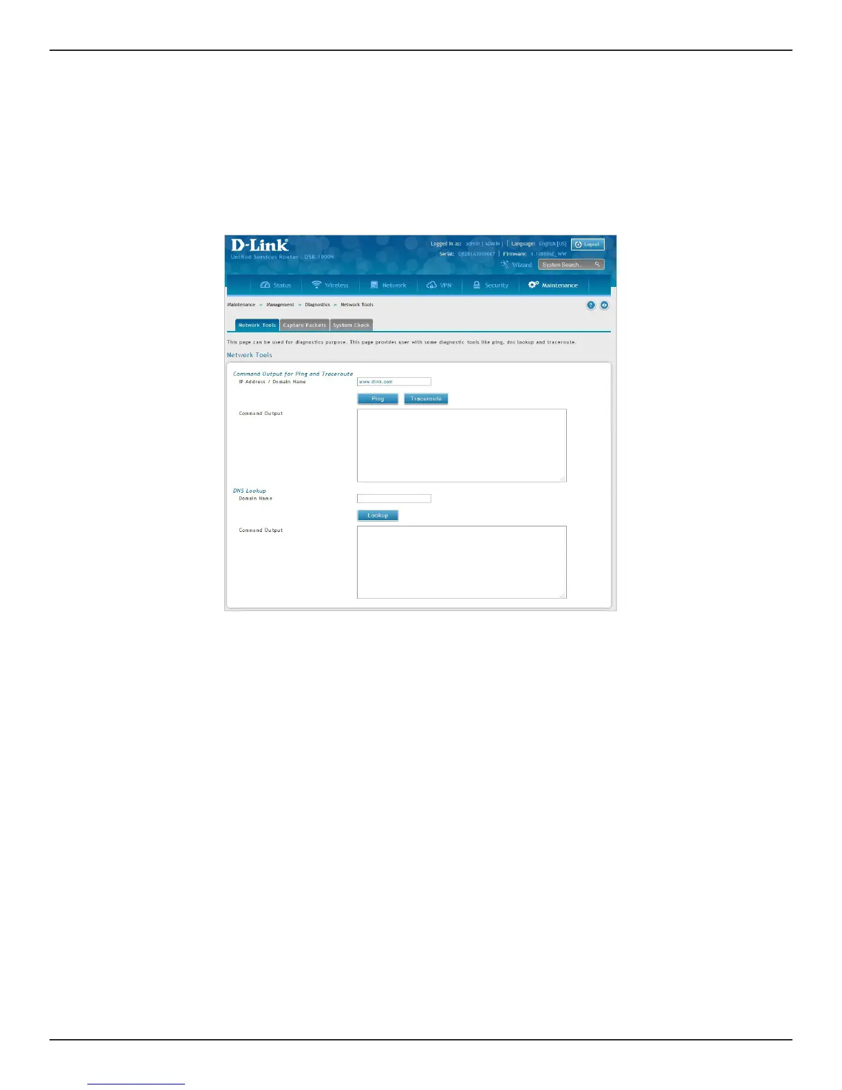 Path: Maintenance > Management > Diagnostics > Network Tools