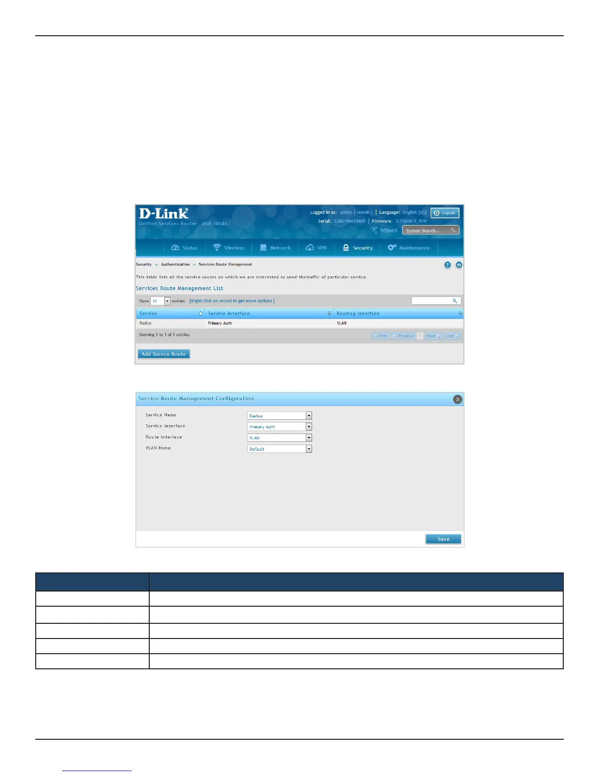 Service Route Management is a feature that allows the user to congure and interface on which the service