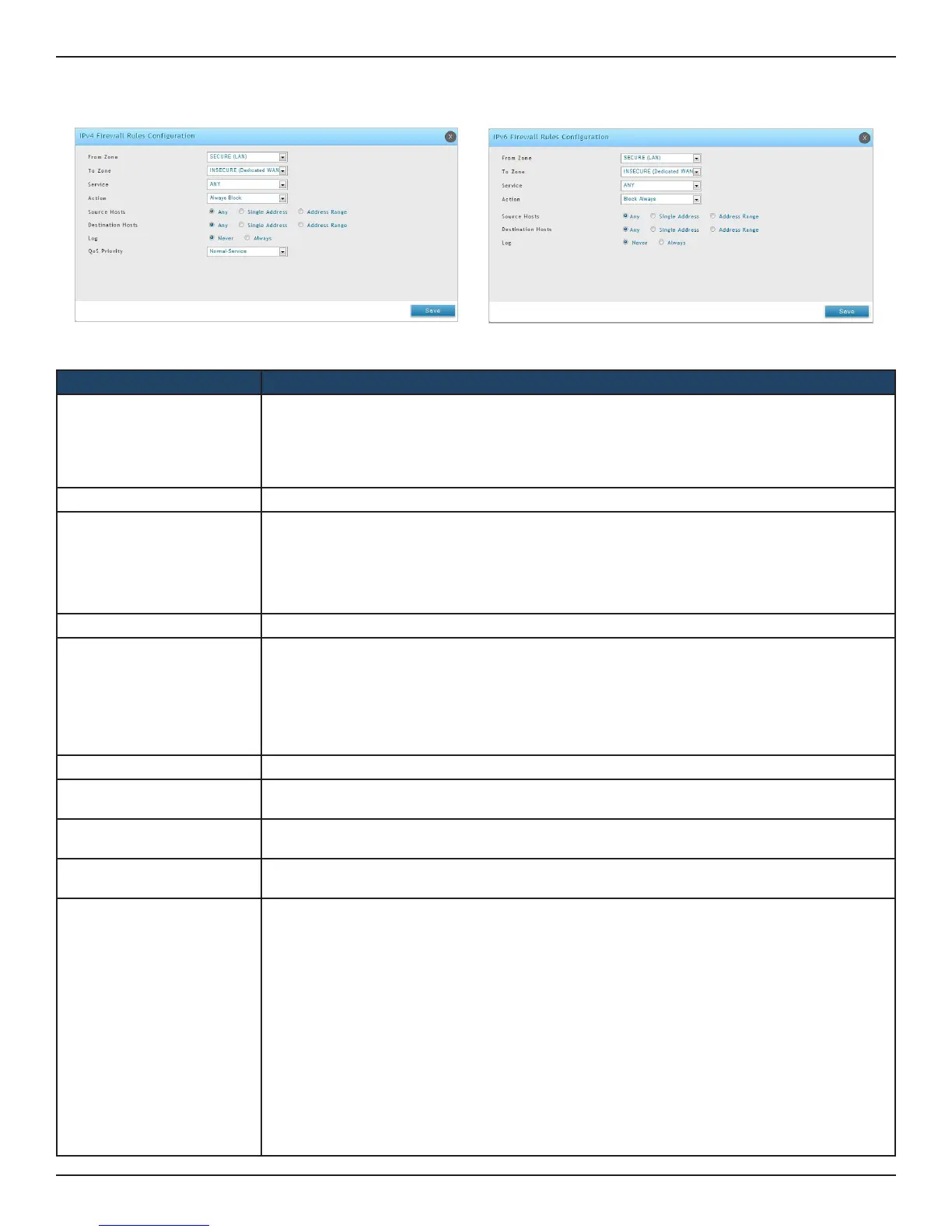 Service Select a service from the drop-down menu. ANY means all trac is aected by this rule.