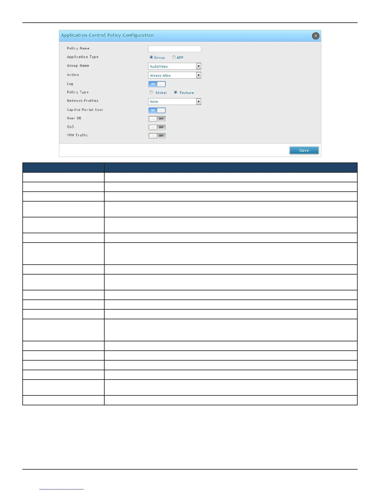 to the selected application(s). If Feature is selected as the Policy type, the following elds will be