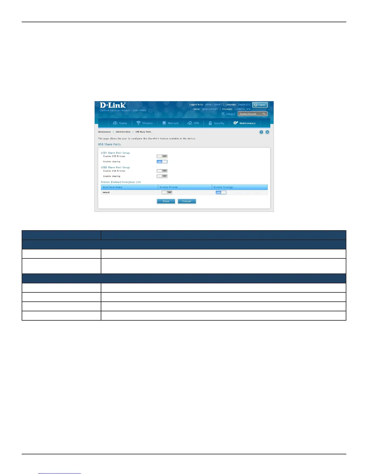 This page allows congure the Share Port feature available on this router.