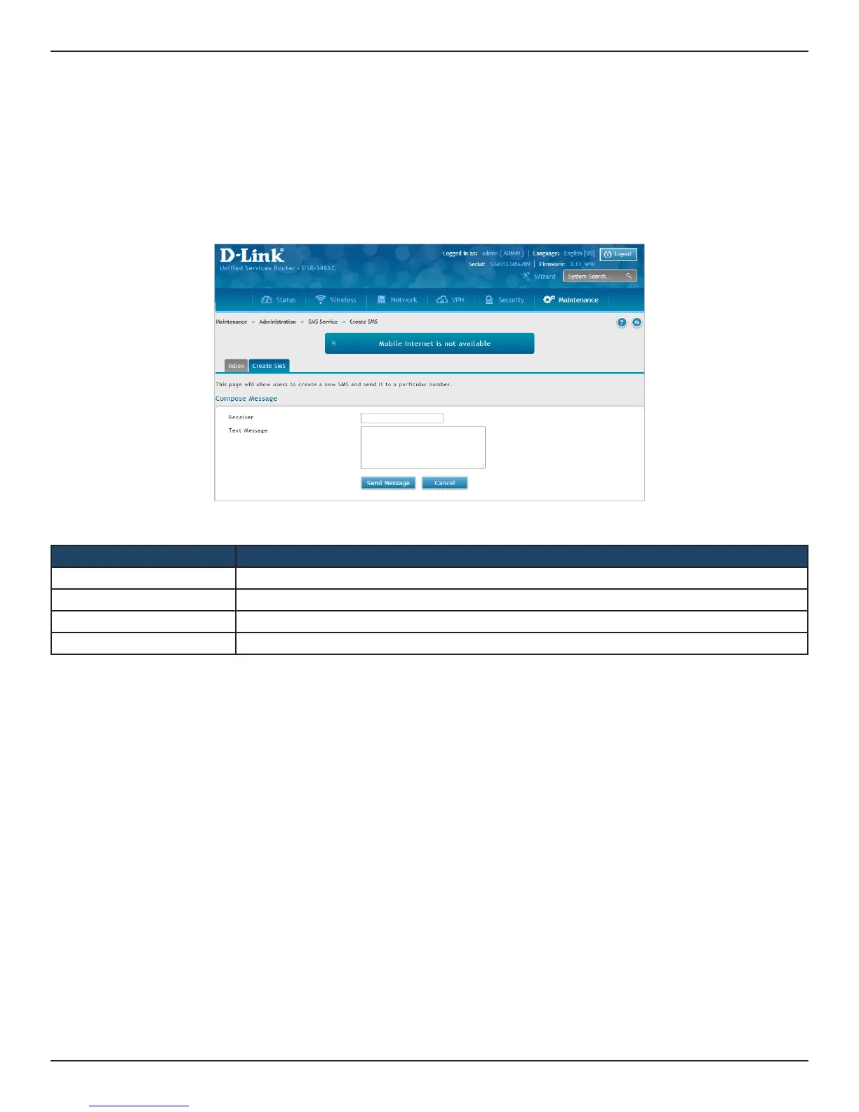 1. Click Maintenance > Administration > SMS Service > Create SMS tab.