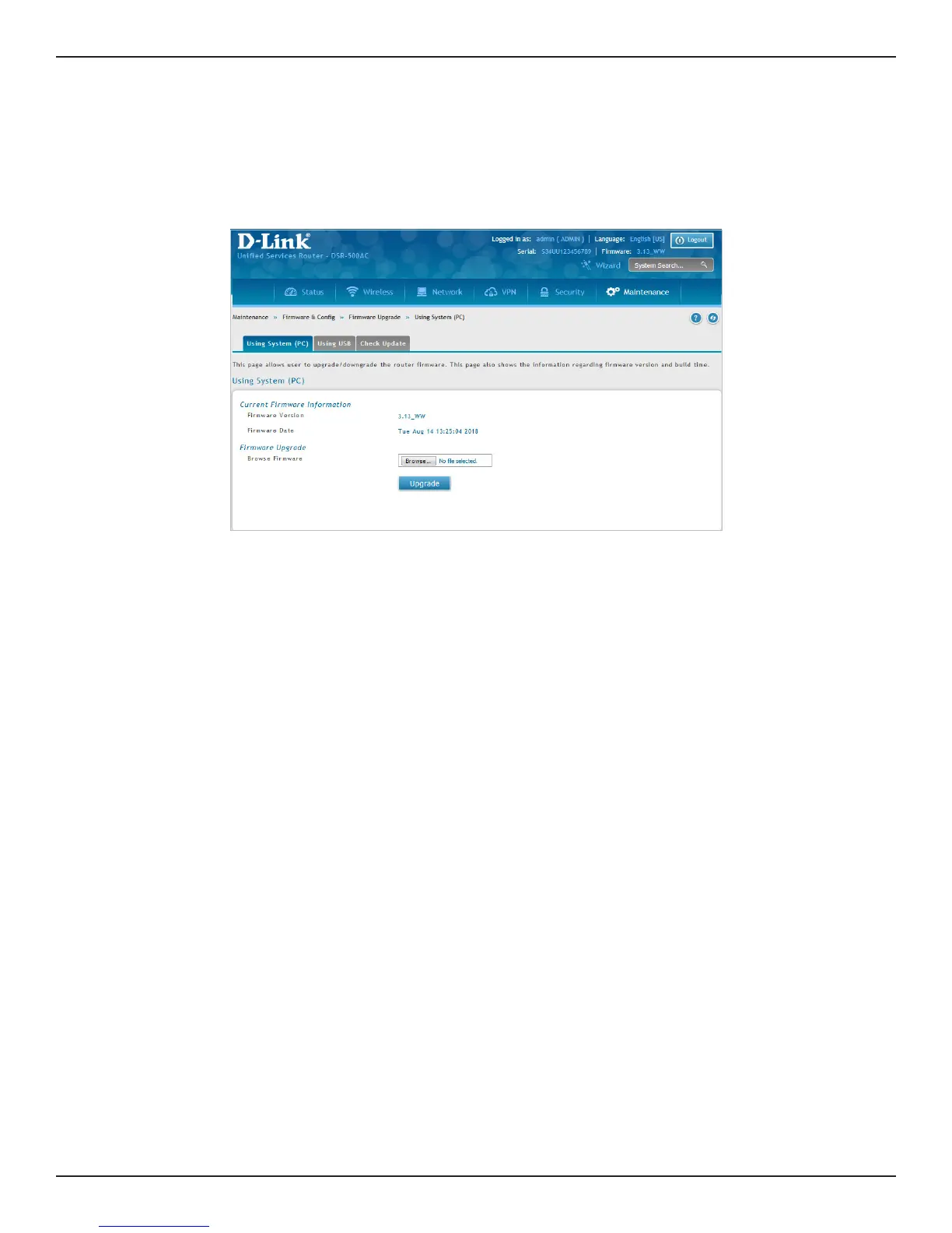 Note: The upgrade process takes a few minutes. Do not interrupt the upgrade or turn o the router;