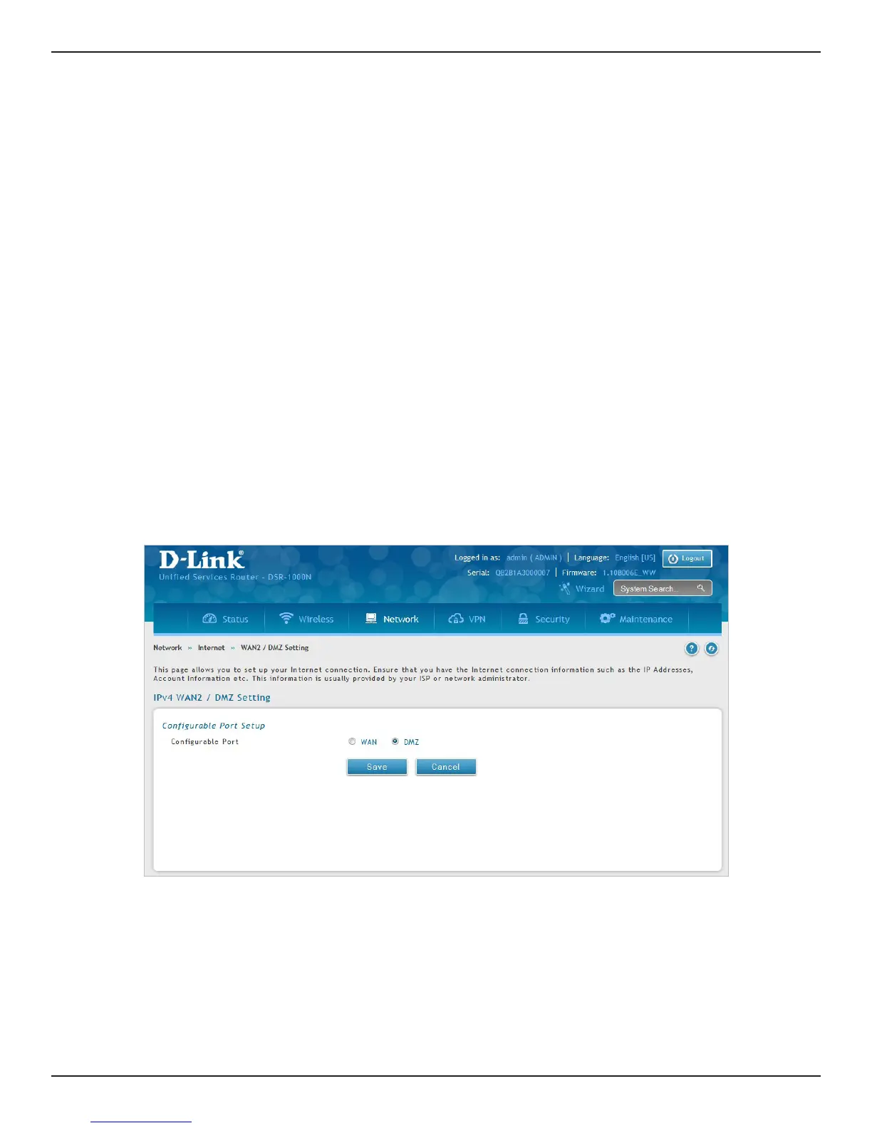 Note: DSR-500/1000/500AC/1000AC, in order to congure a DMZ port, the router’s congurable port must be set to